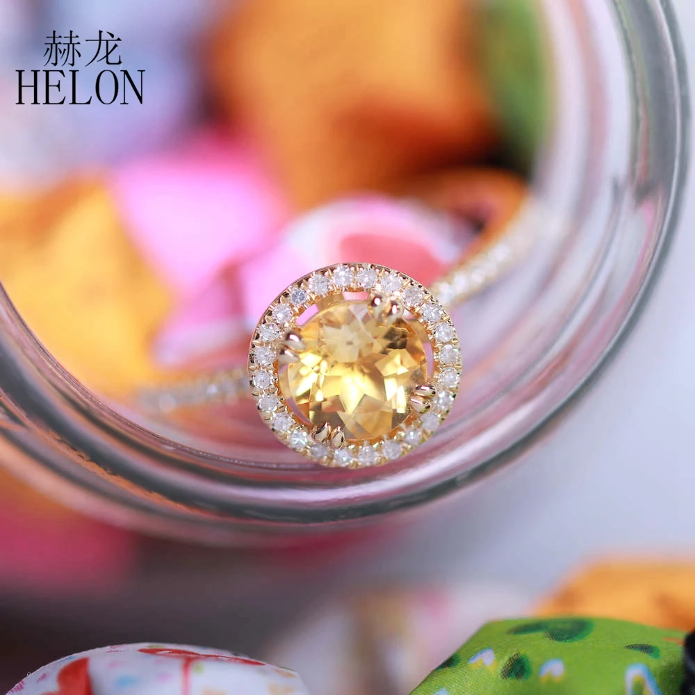 Anello in oro giallo massiccio 10k da 6,5 mm, anello con citrino autentico, diamanti naturali, anello di fidanzamento, anello di fidanzamento, gioielli da donna