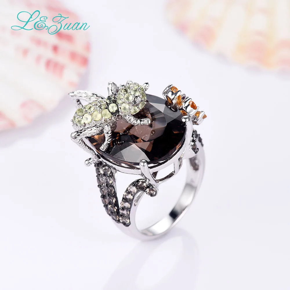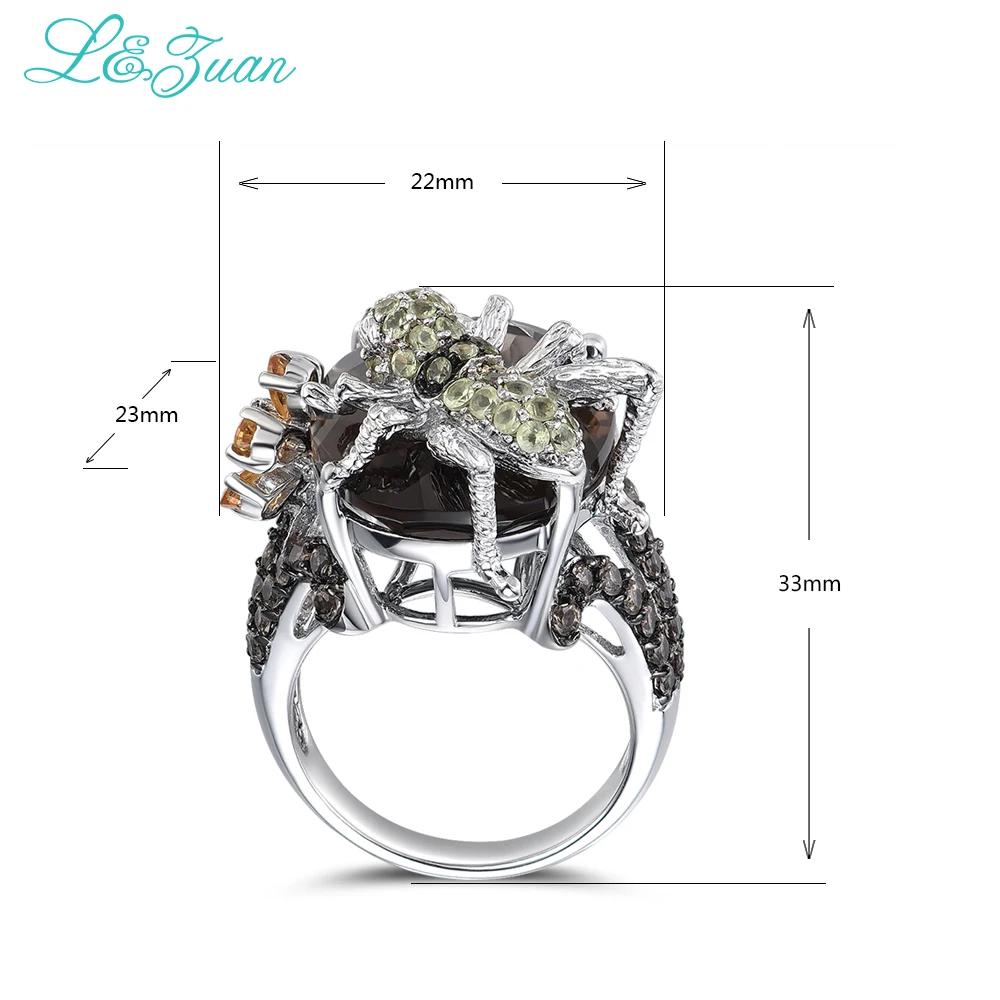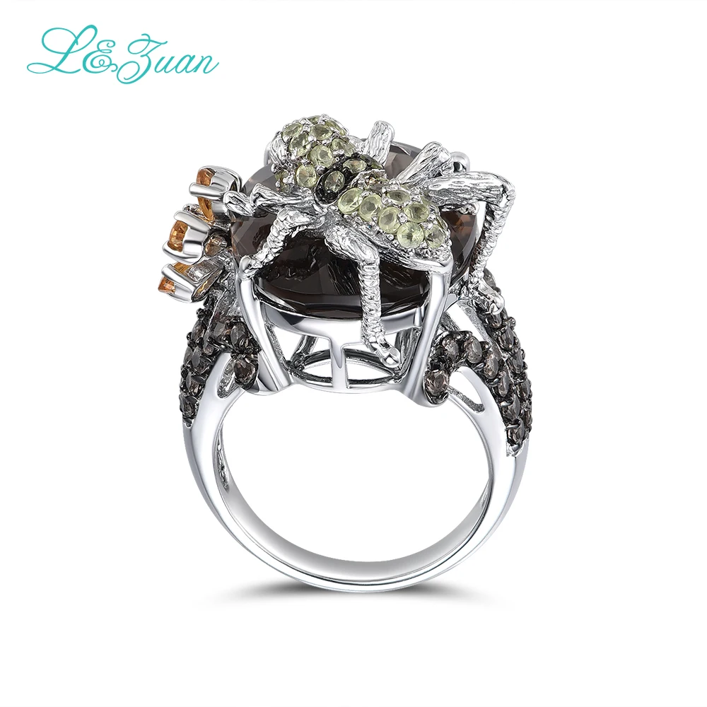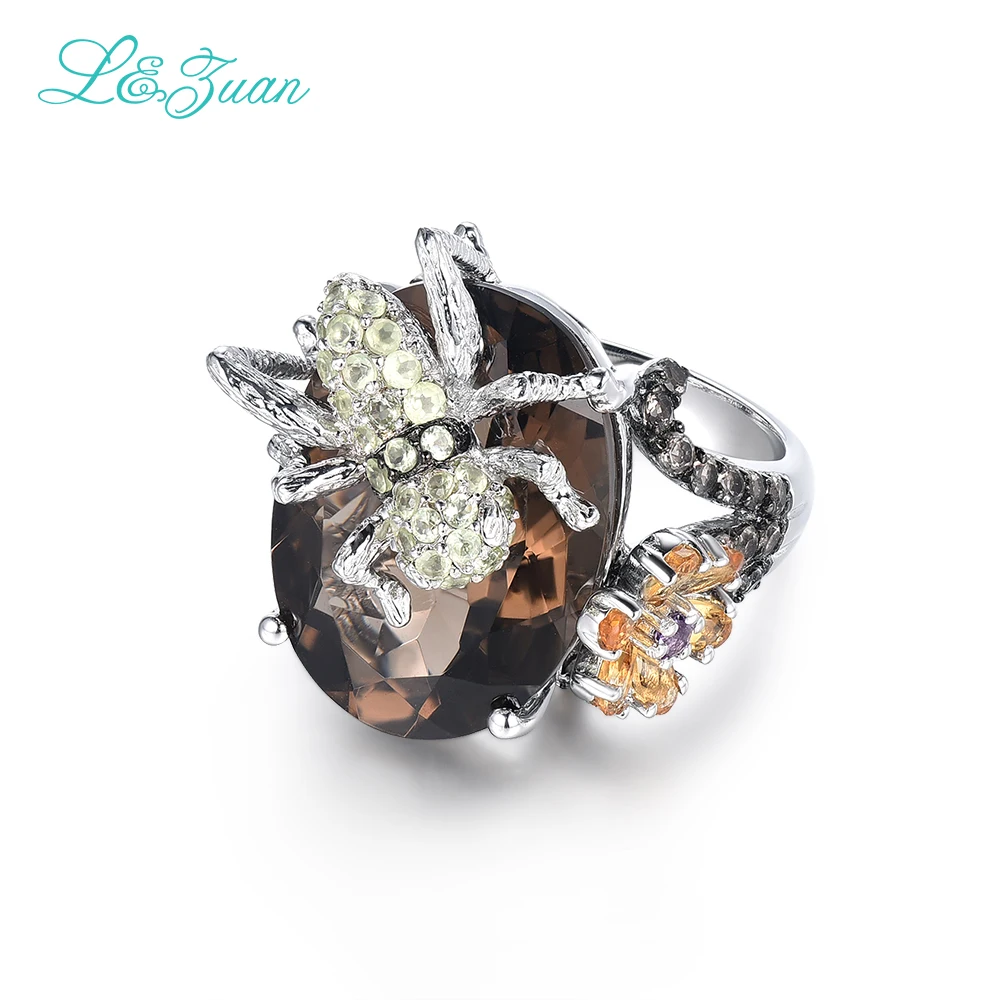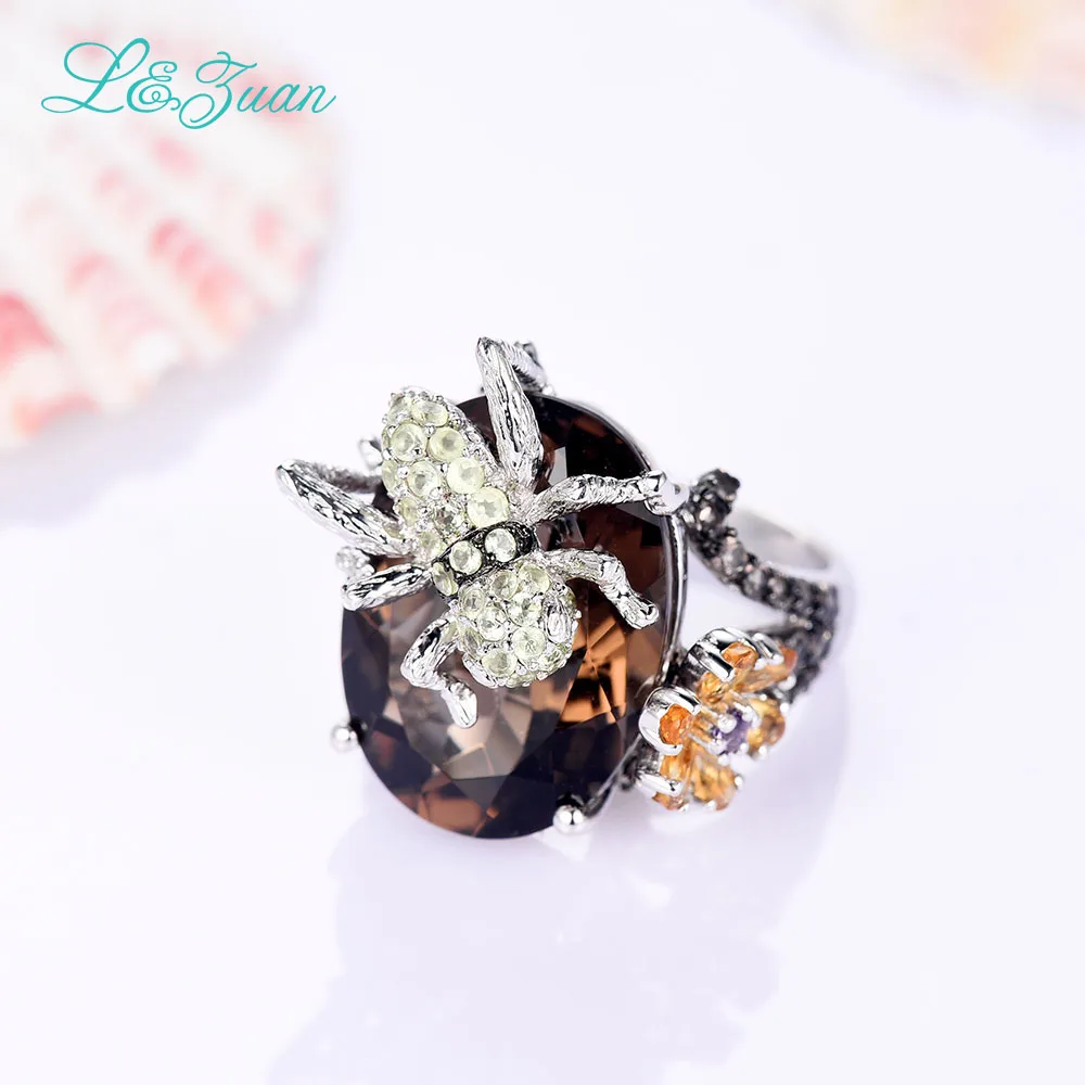 Anelli di ragno di lusso in argento sterling 925 di colore marrone per le donne Anello di citrino naturale gioielleria raffinata Anelli di diamanti 5724K