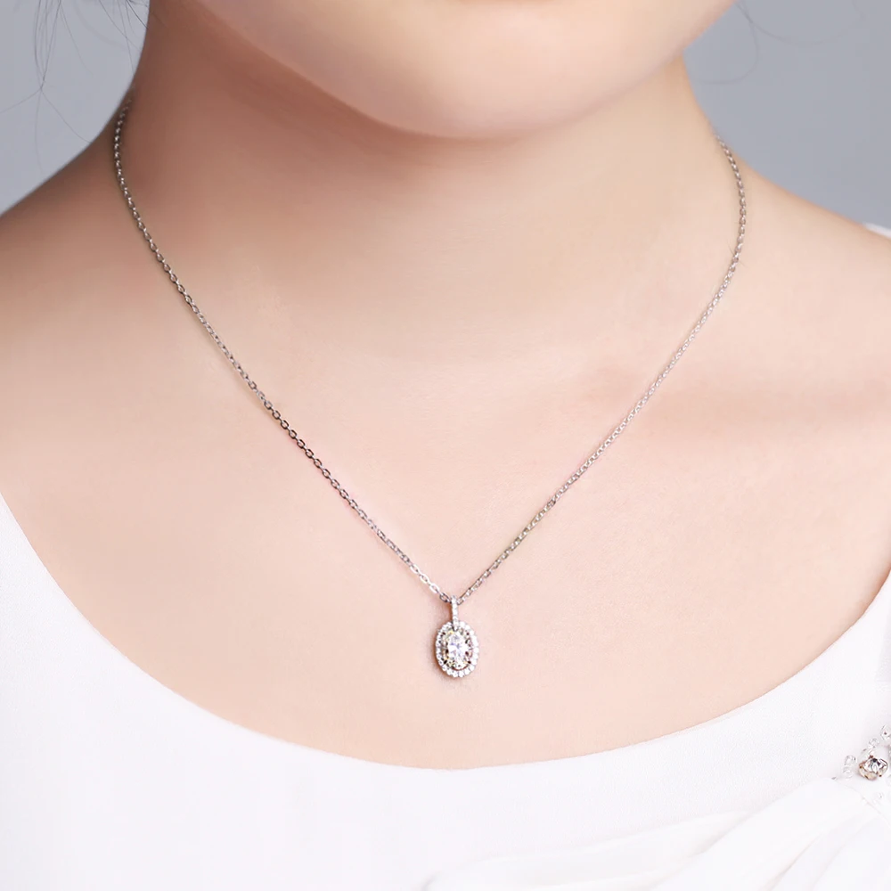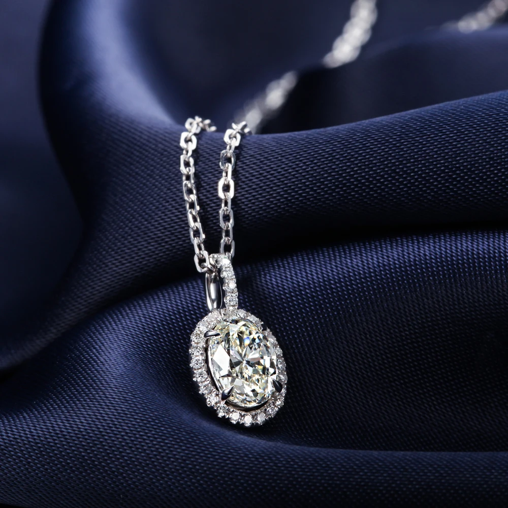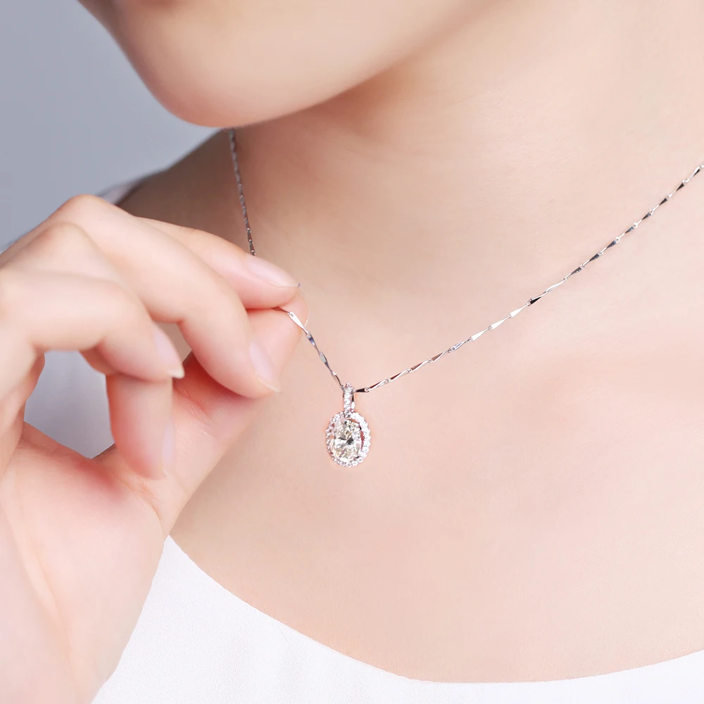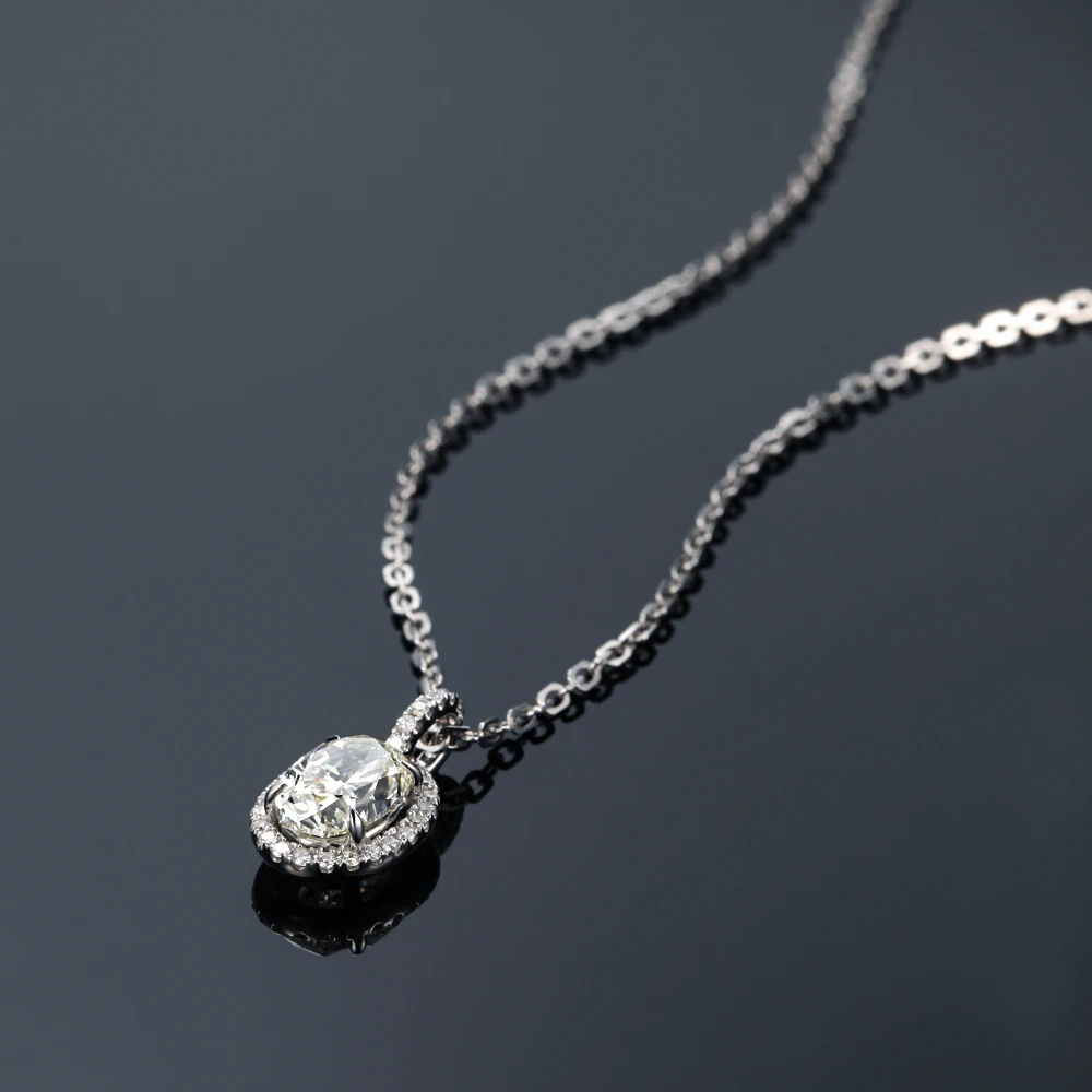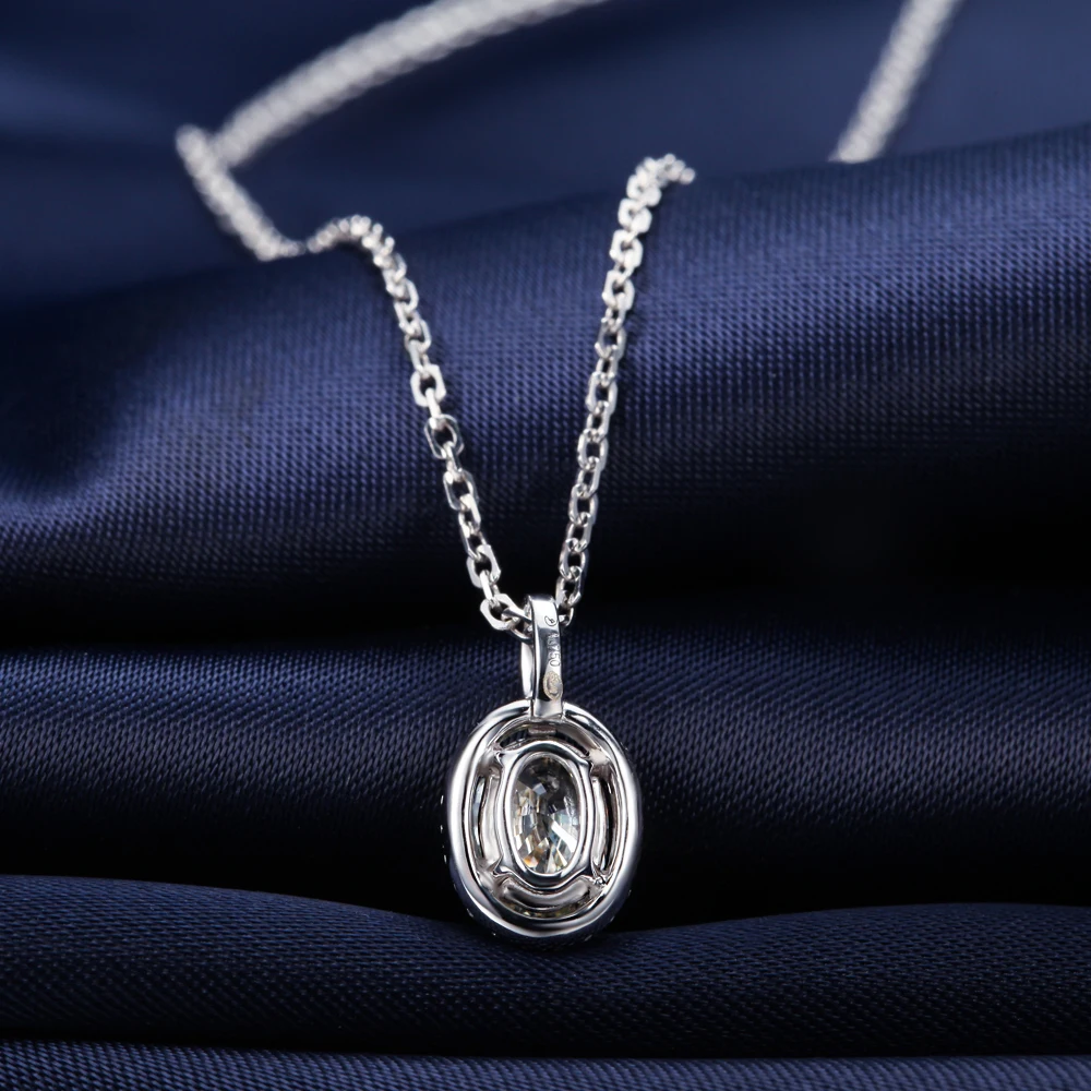 Ciondolo in oro bianco 18 carati con diamante DE / SI certificato taglio ovale da 0,6 CT con collana a catena in argento 925 D03815