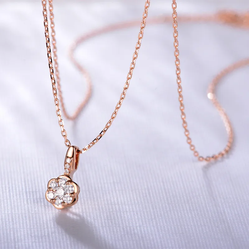 Collana con diamanti di marca Ciondolo in oro 18 carati con diamante certificato reale da 0,11 CT con catena in argento 925 in regalo