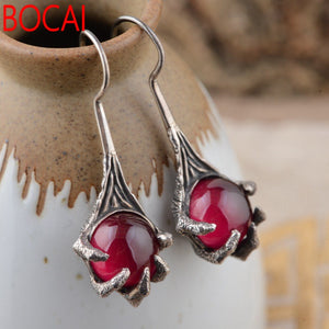 Red corundum S925 silver inlaid Antique Style Earrings