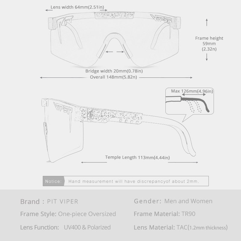 Pit Viper High Quality Polarized UV400 Men Oversized Sunglasses  Rimless Goggles Shield Gafas de sol Women 2022