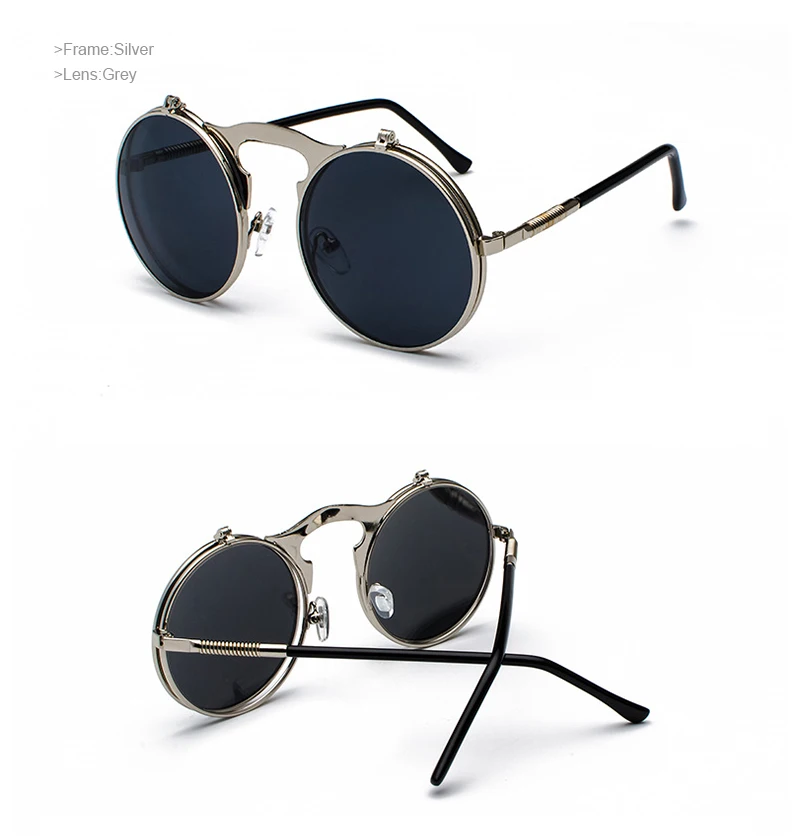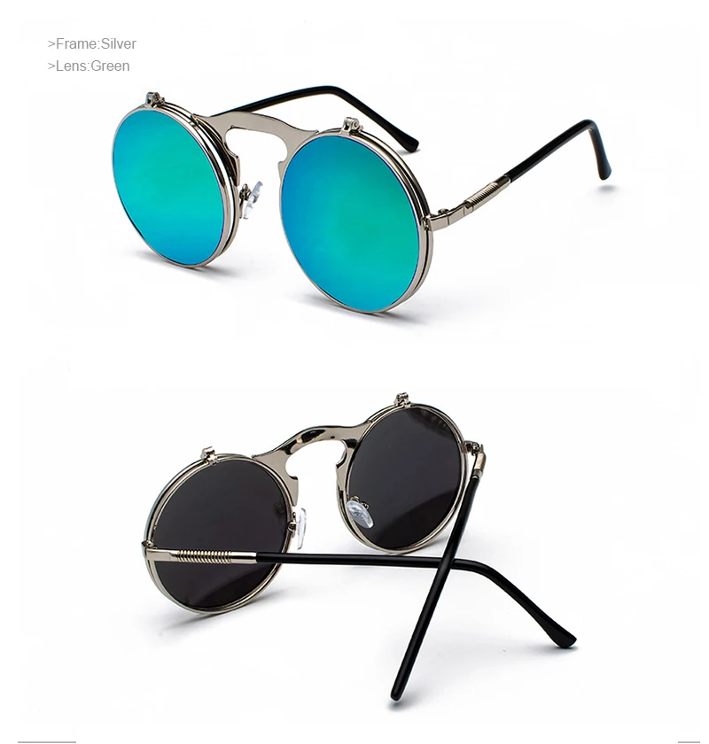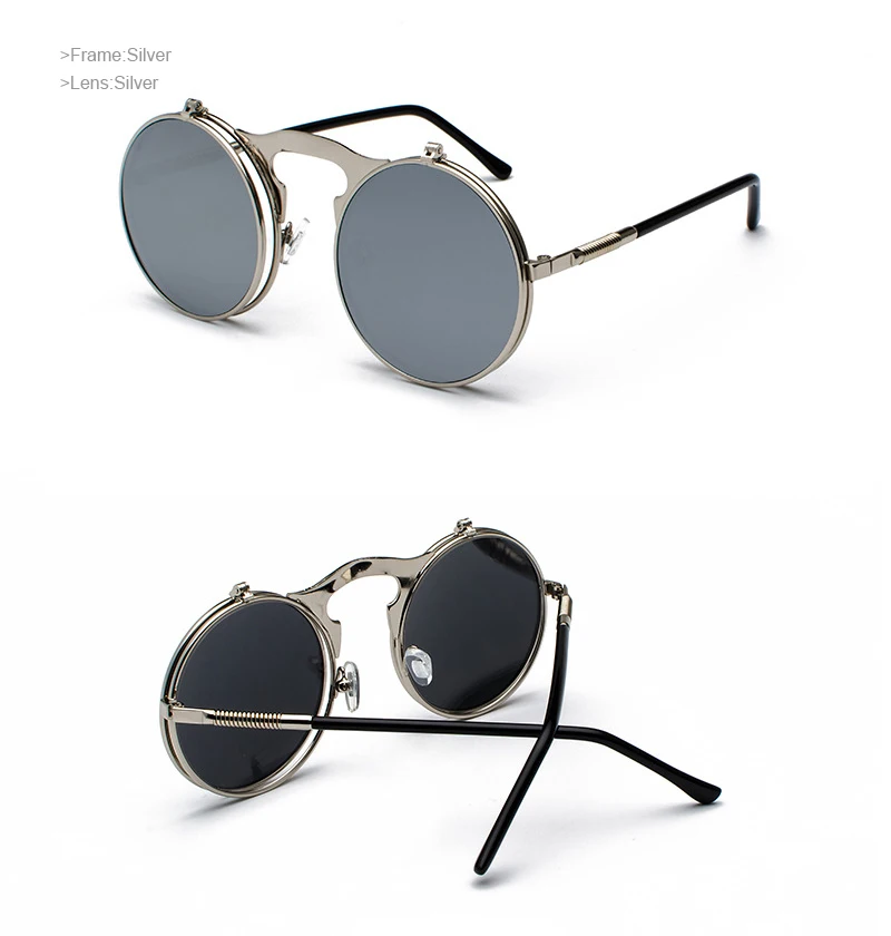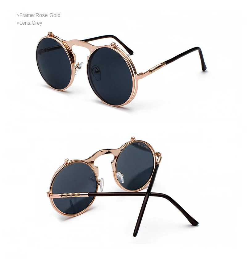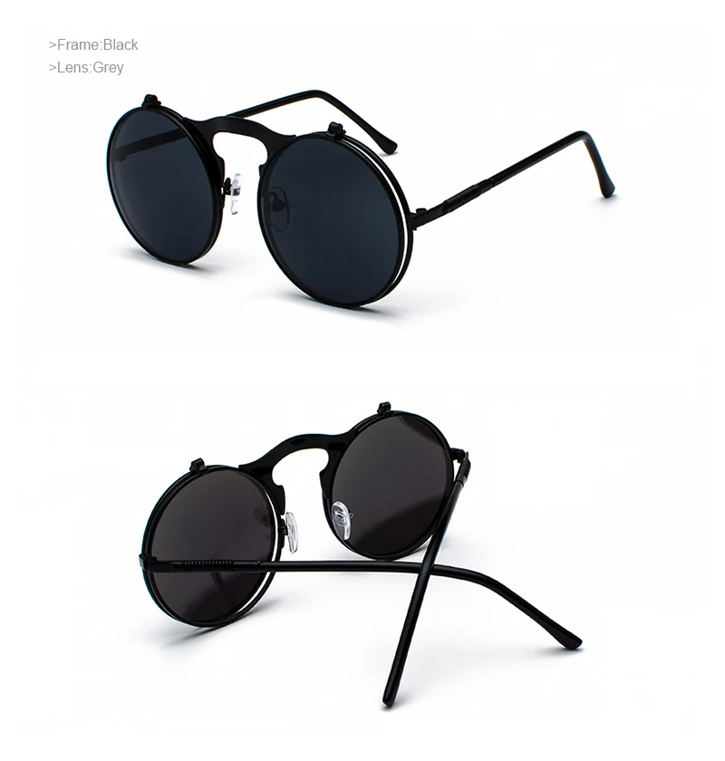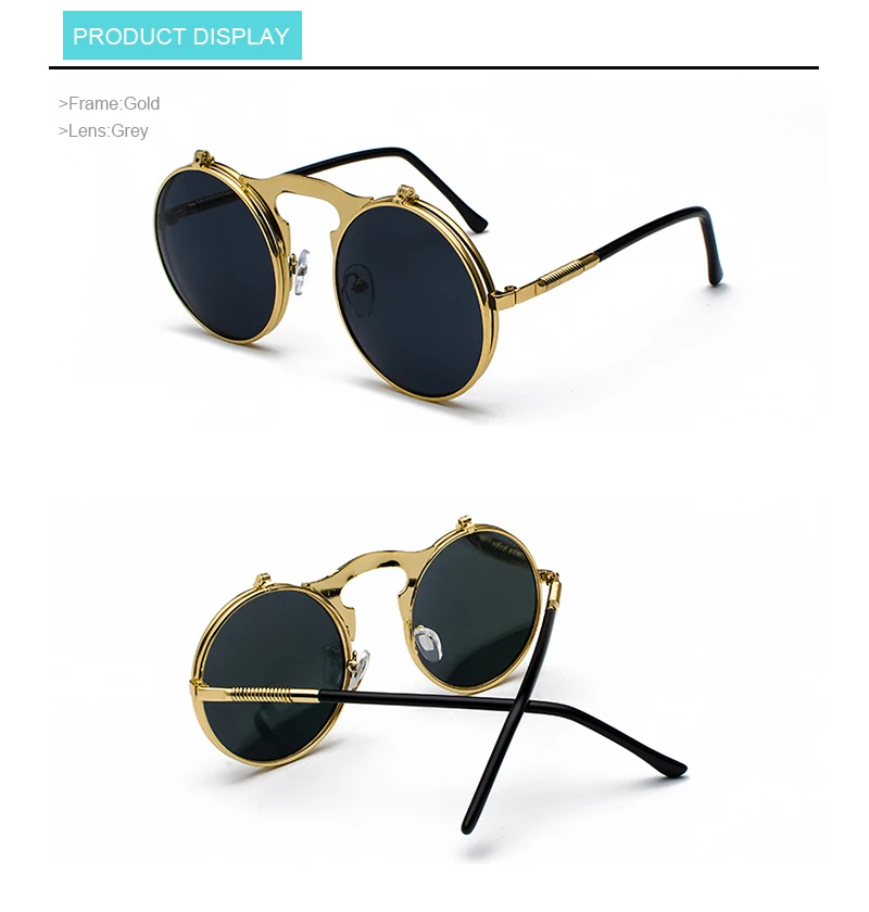 Steampunk Sunglasses Round Metal OCULOS De Sol Women Style Retro Flip Circular Double Metal Sun Glasses Men CIRCLE SUN GLASSES
