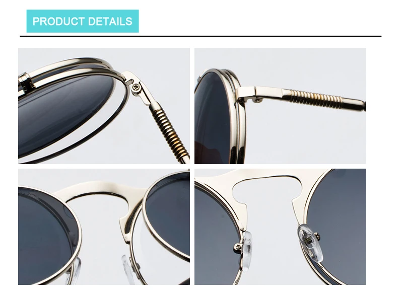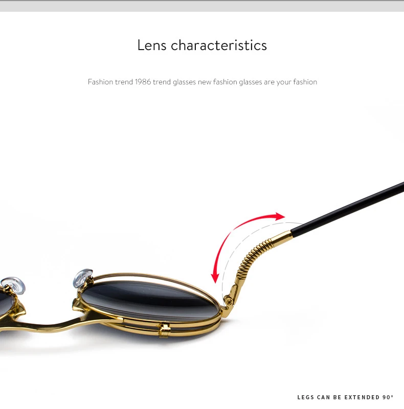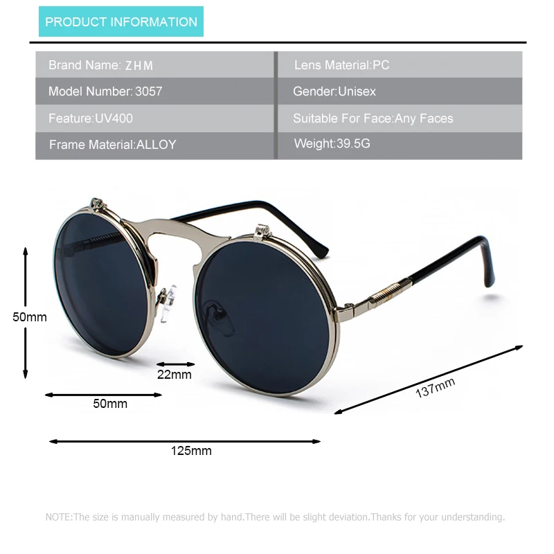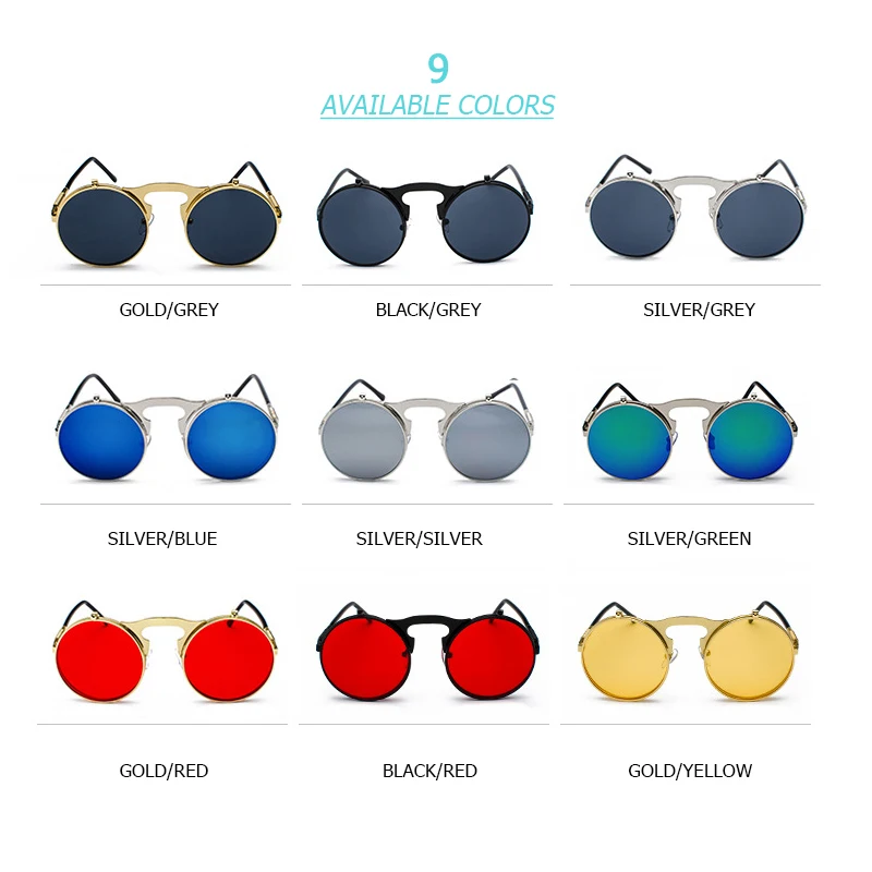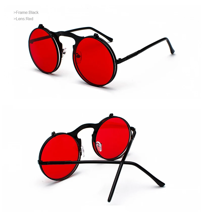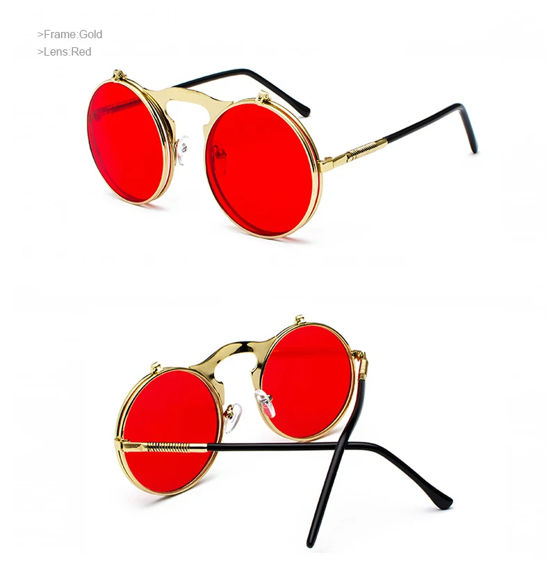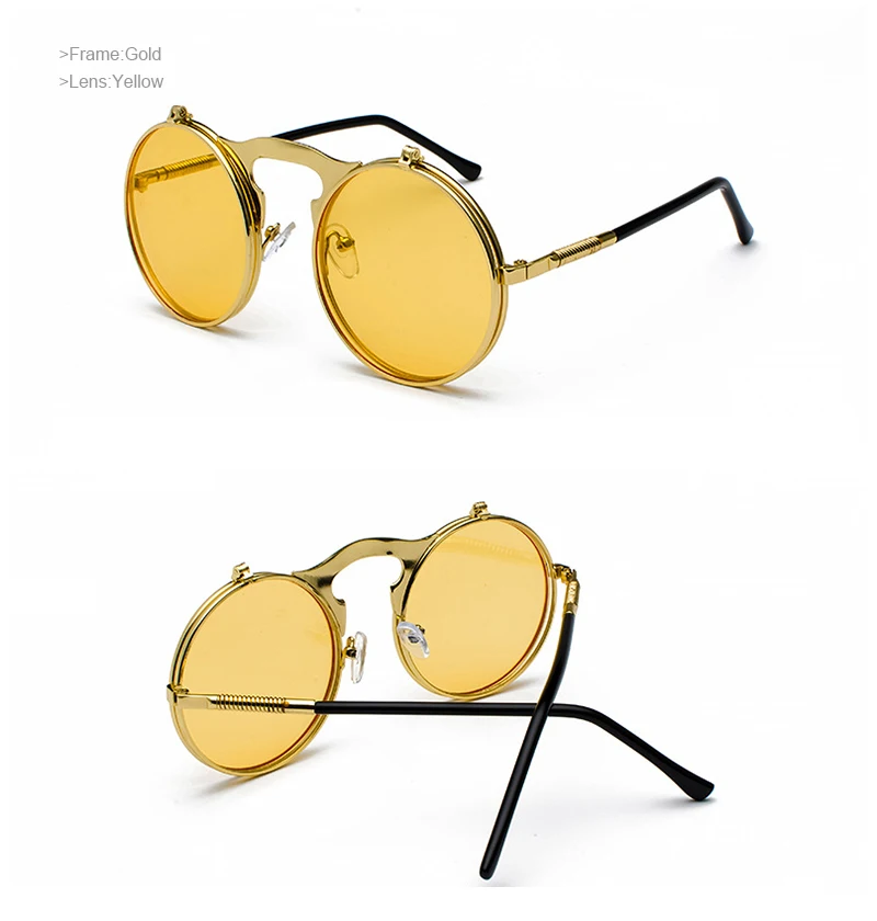 Steampunk Sunglasses Round Metal OCULOS De Sol Women Style Retro Flip Circular Double Metal Sun Glasses Men CIRCLE SUN GLASSES