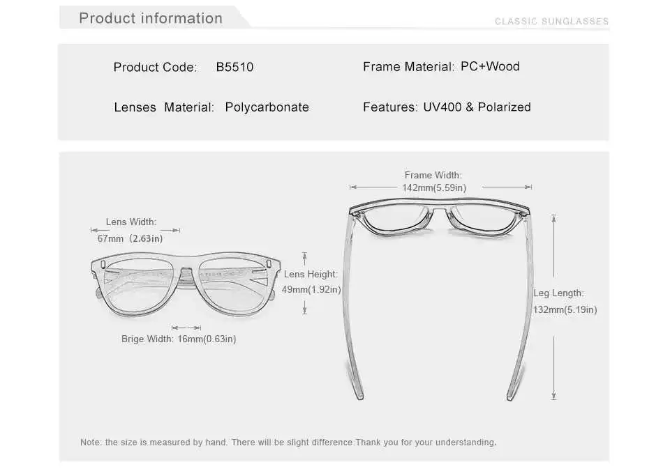 Temple material : 100% Natural wood