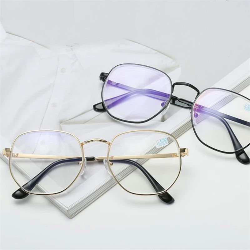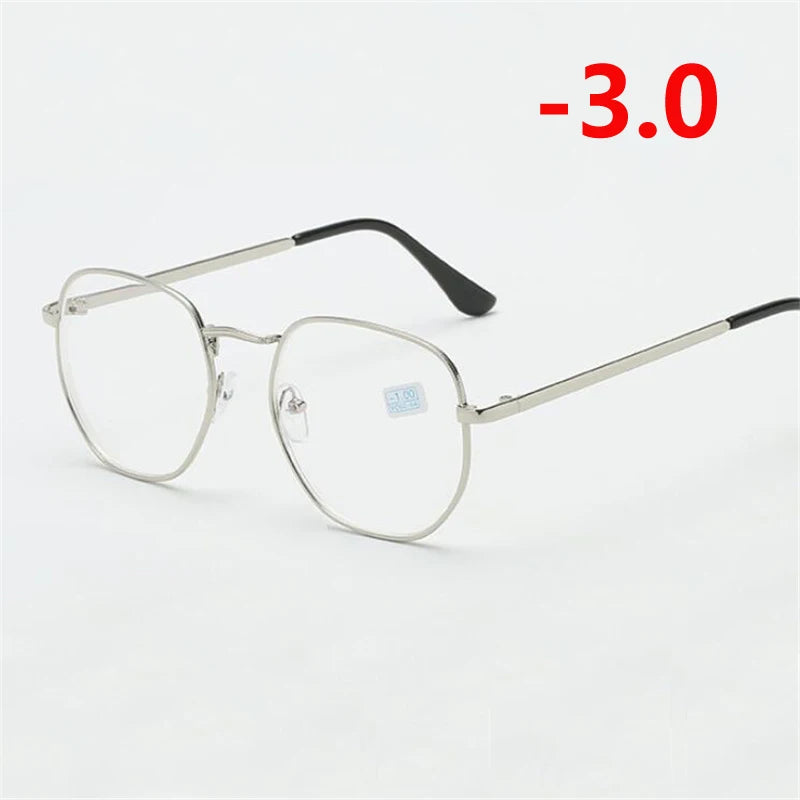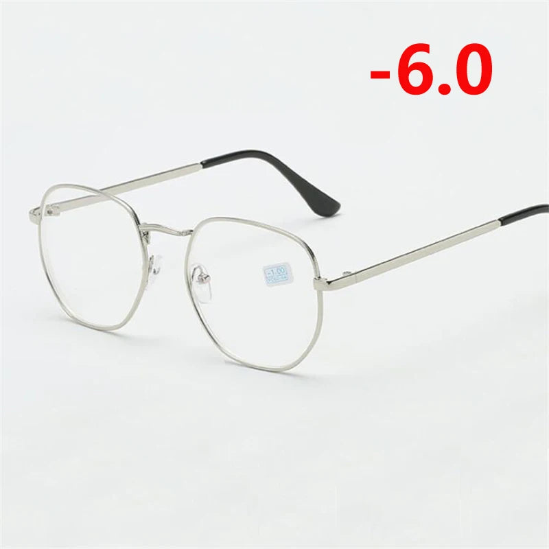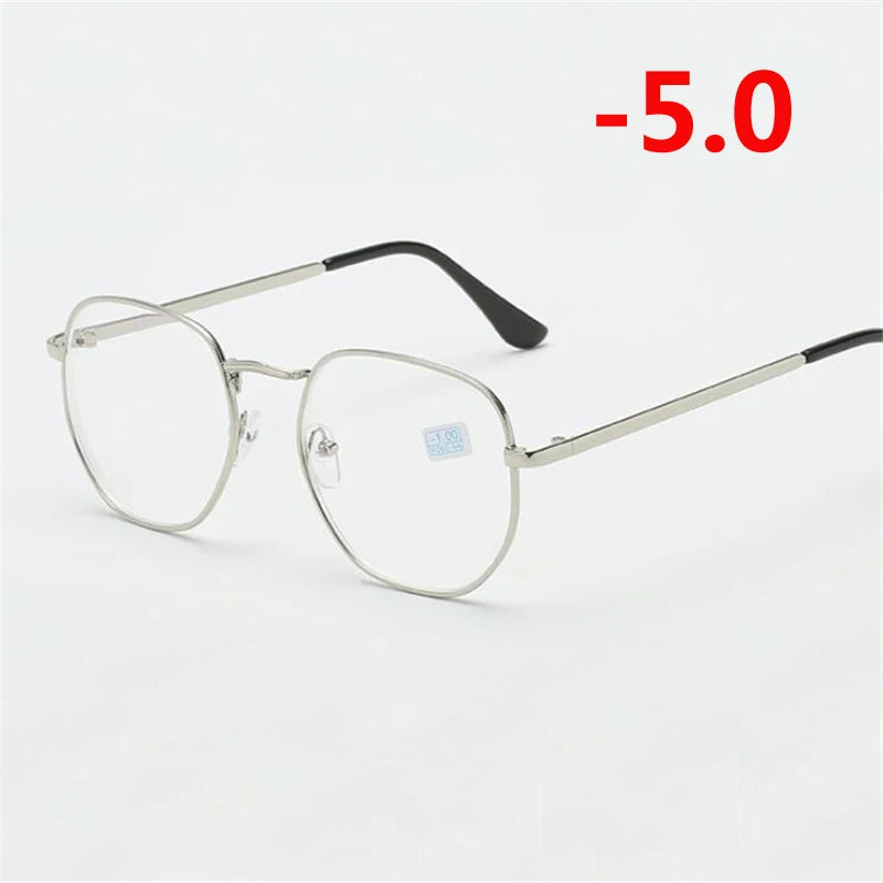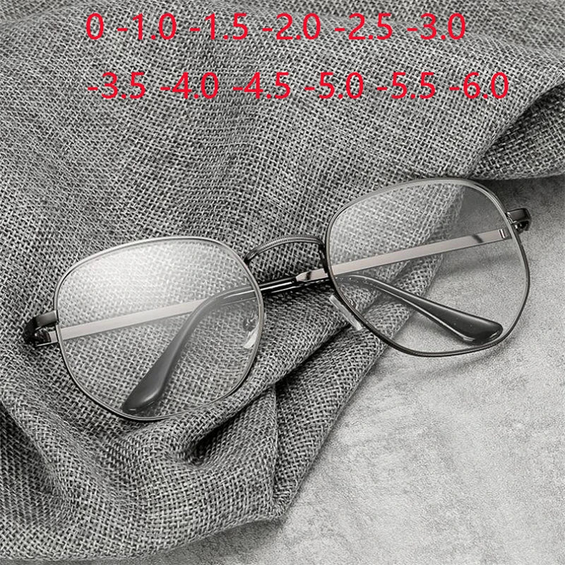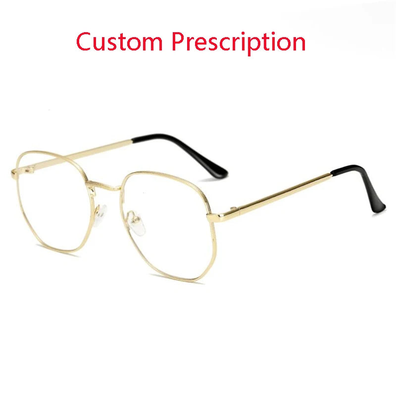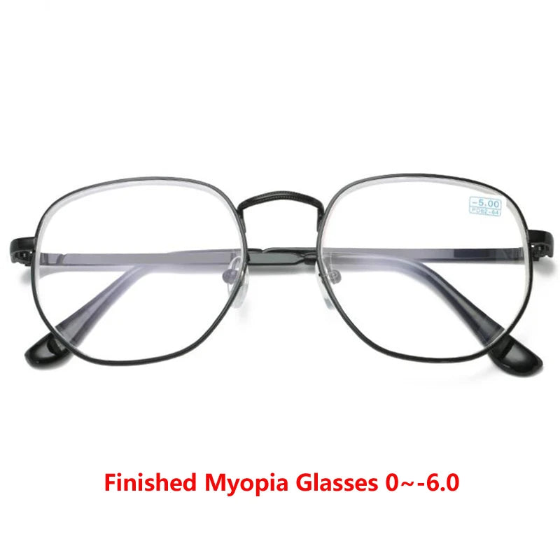 0 -1.0 -1.5 -2.0 A -6 Poligono Occhiali Miopia Finiti Donna Uomo Retro Studente Diottrie Occhiali Da Vista Nero/Montatura Oro