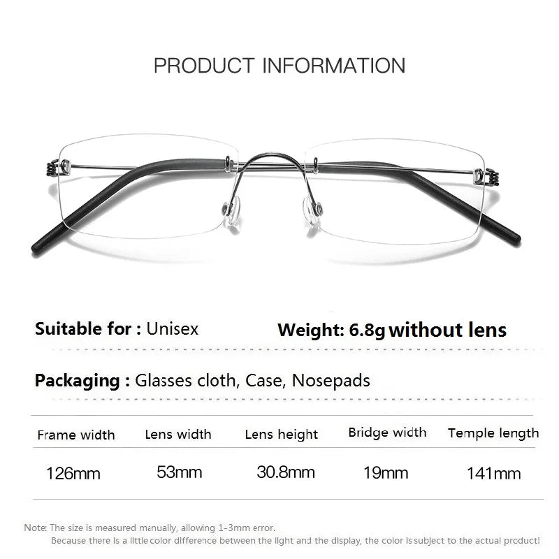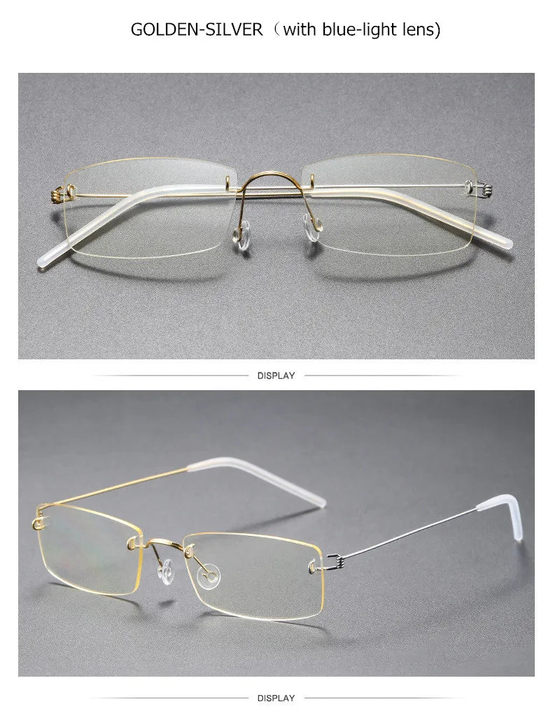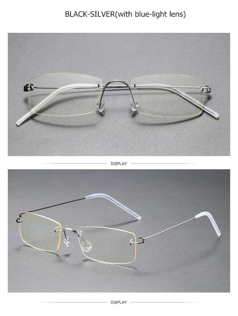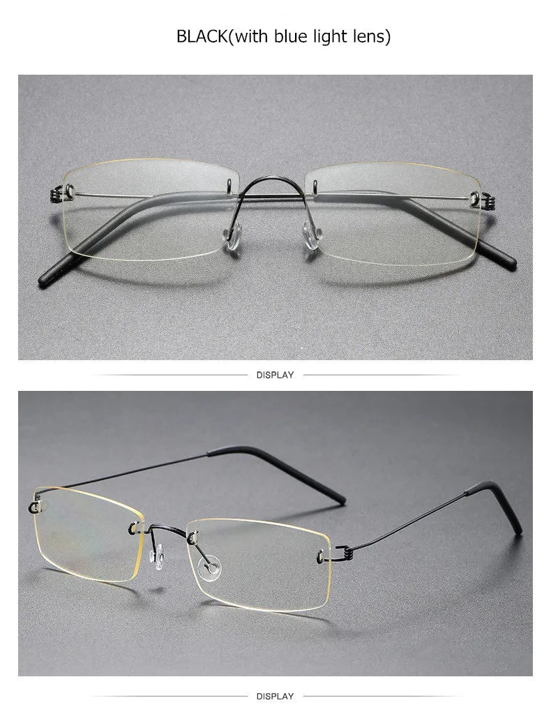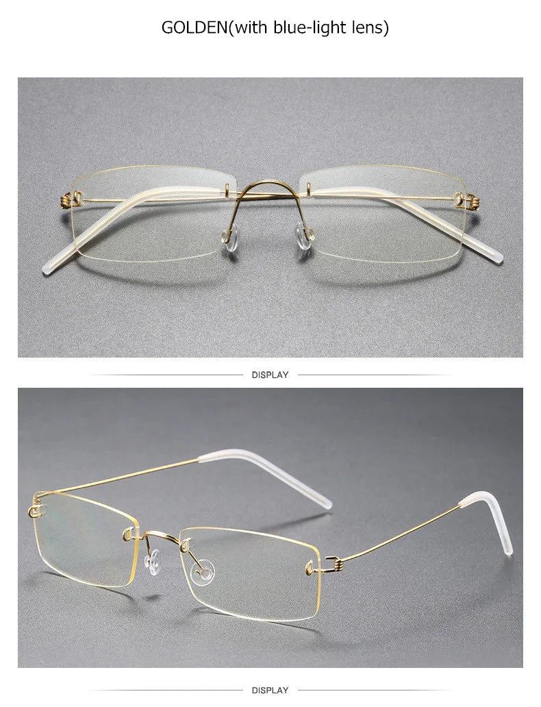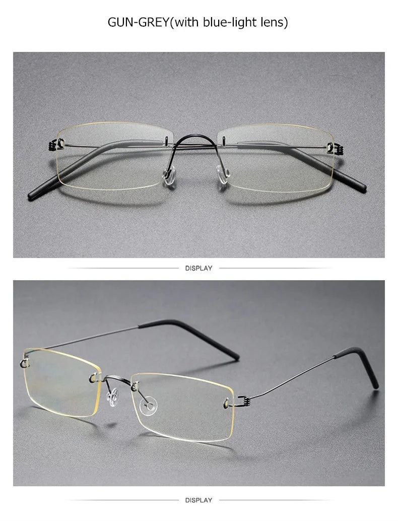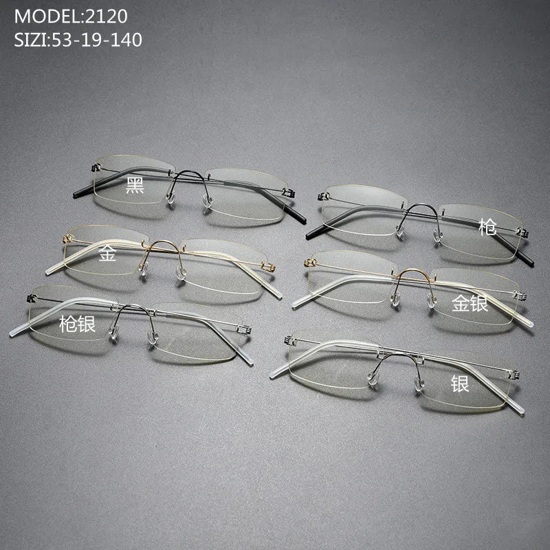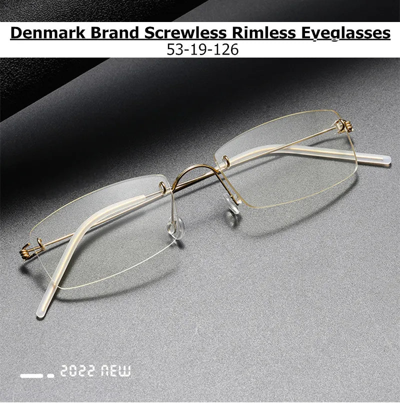 Occhiali da vista da uomo senza montatura in stile Danimarca Occhiali da vista senza montatura in titanio ultraleggero da donna Lenti anti luce blu 2120