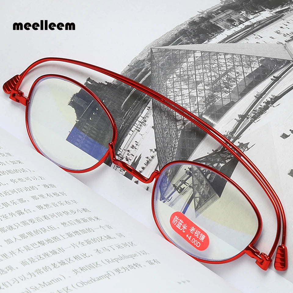 Unisex Anti-blue light Thin Reading Glasses Men Women Stainless Steel Frame Eyeglasses +1.00 +1.50 +2.00+ 2.50 +3.00