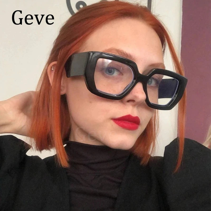 Women's Oversized Blue Light Blocking Glasses Trendy Square Thick Frame Computer Eyeglasses Female Clear Lens Optical Shades