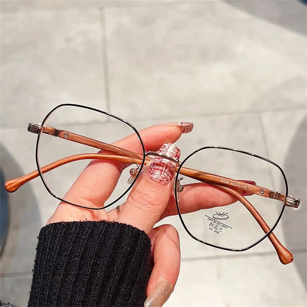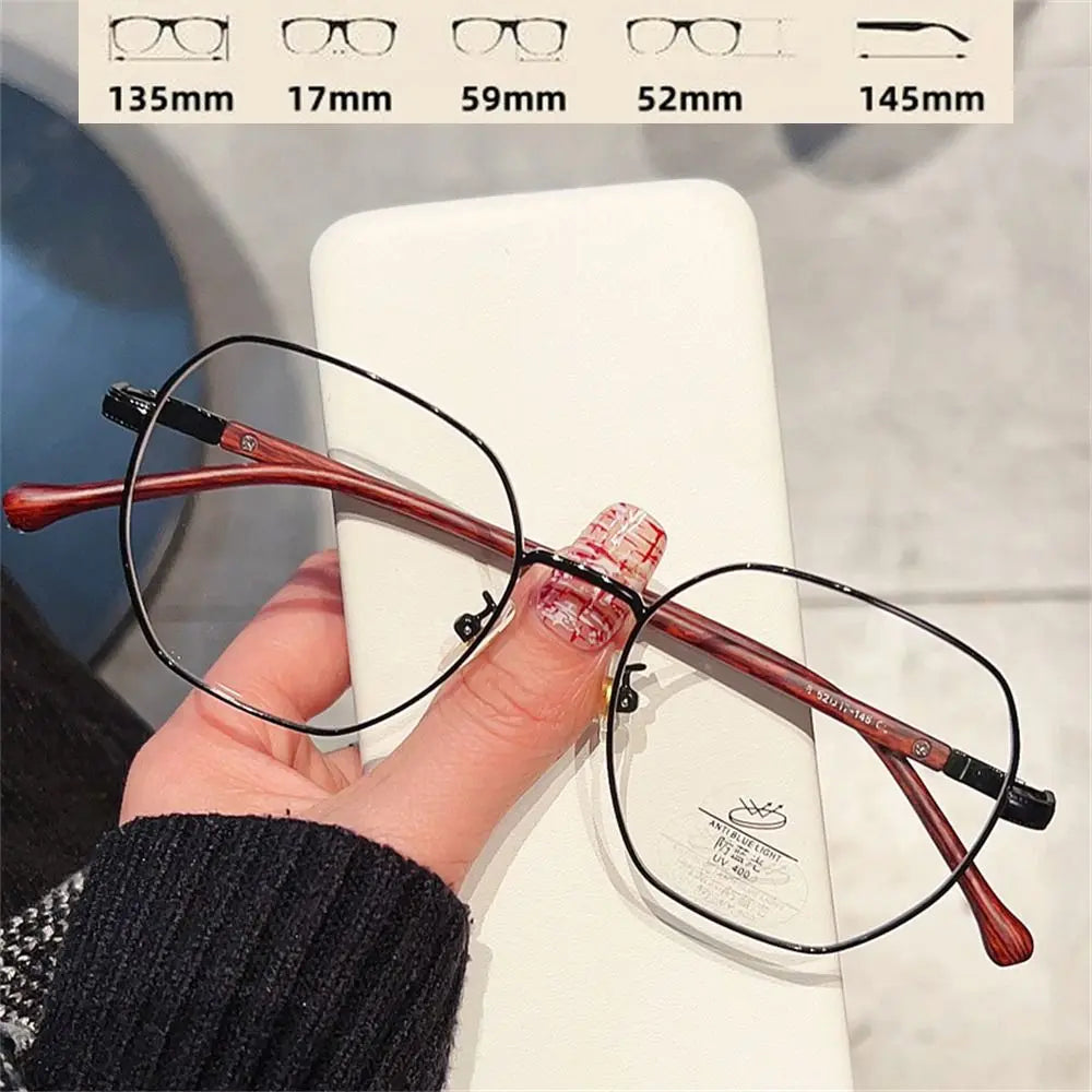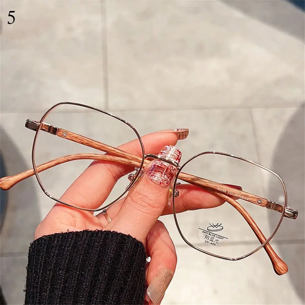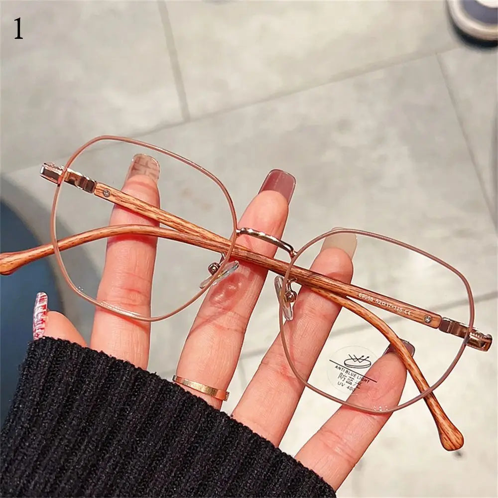 Wood Grain Metal Frame Glasses Retro Vision Care Big Frame Flat Mirror Eyewear Ultra-light Eyeglasses Women Men