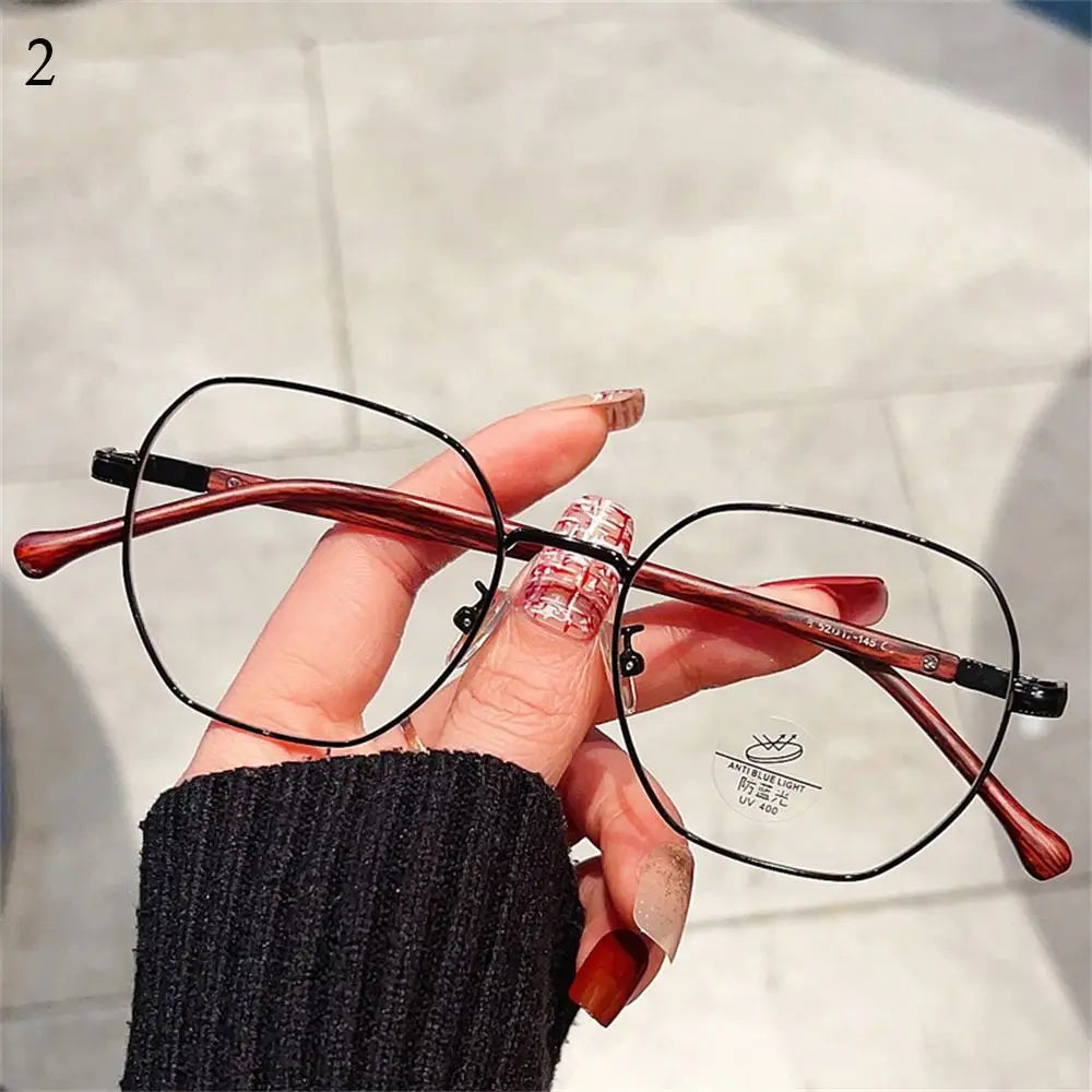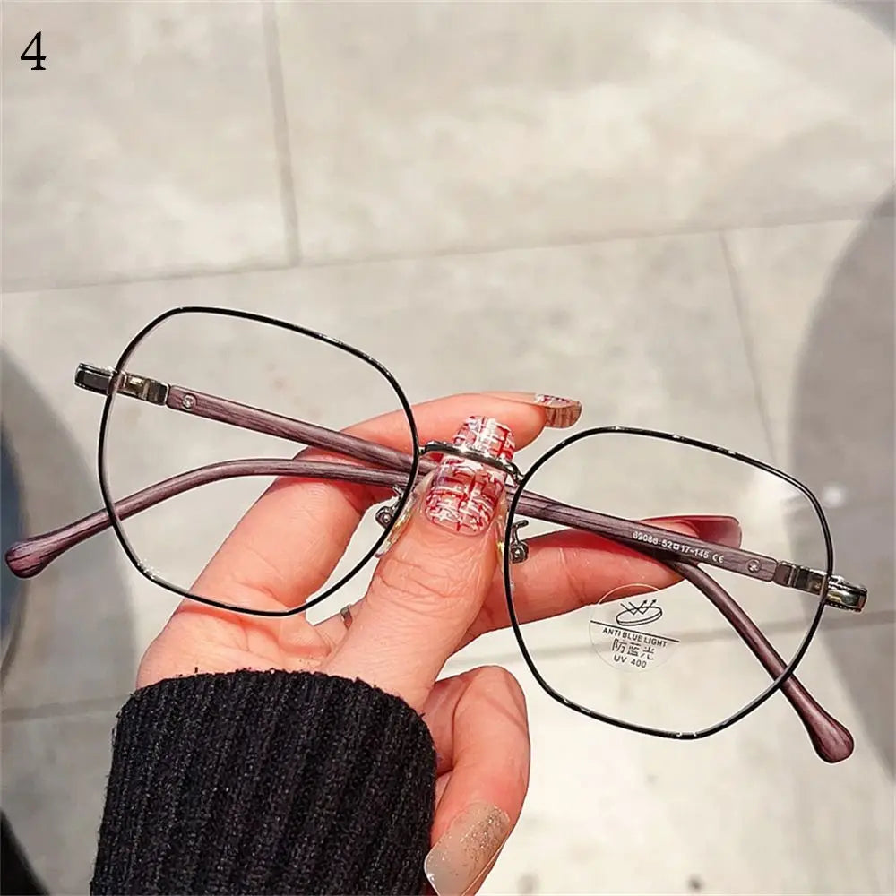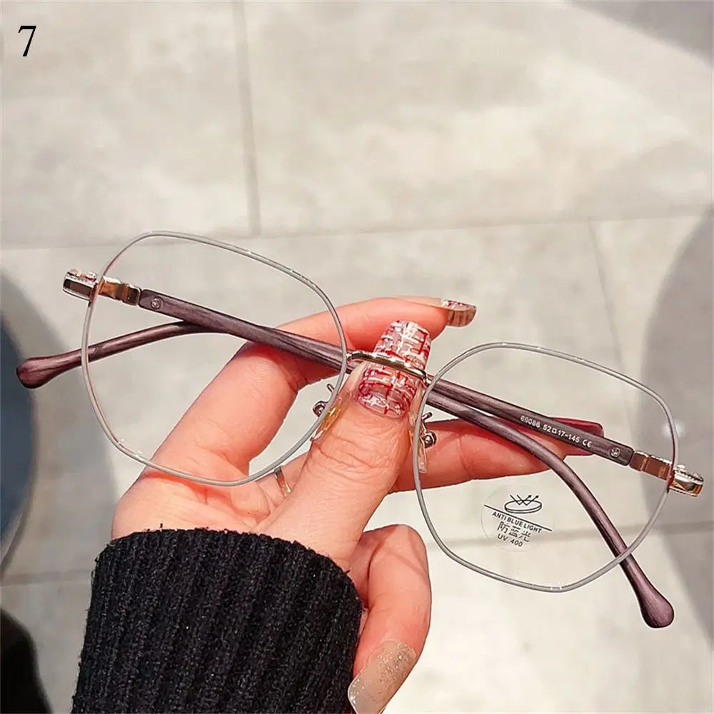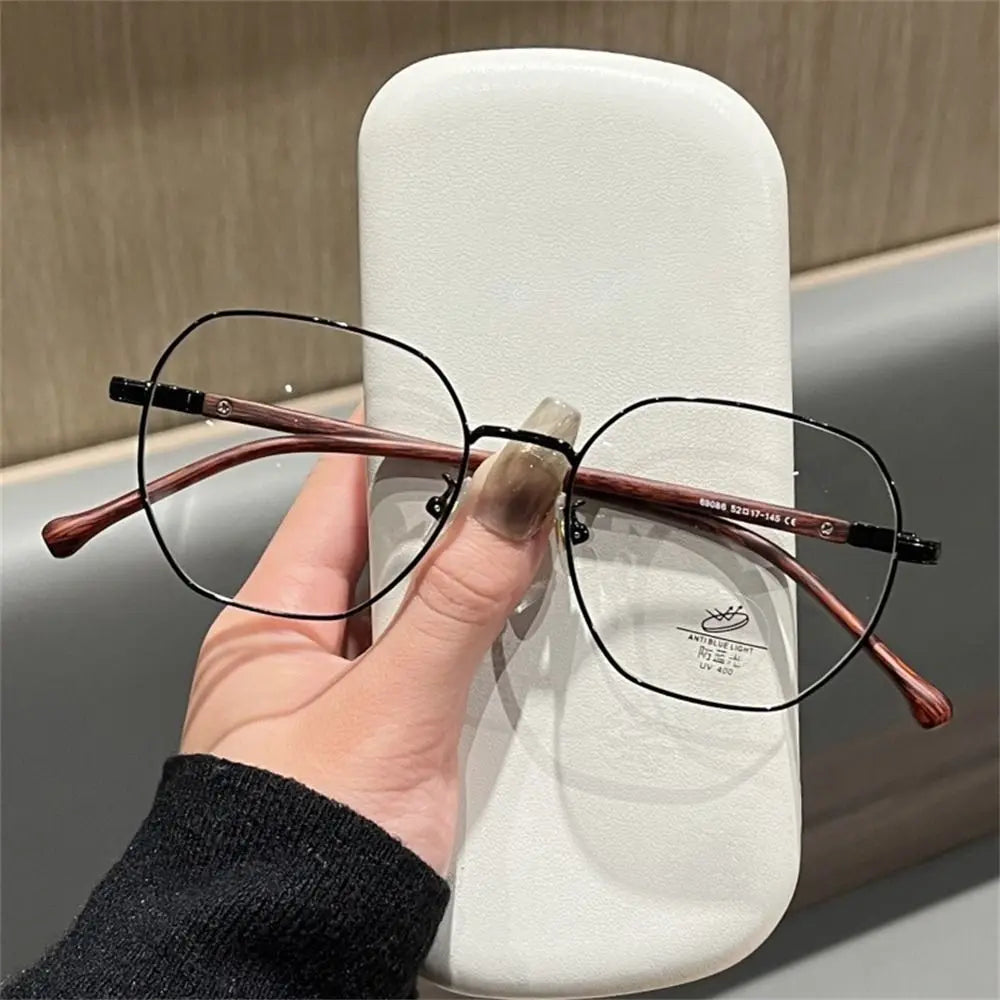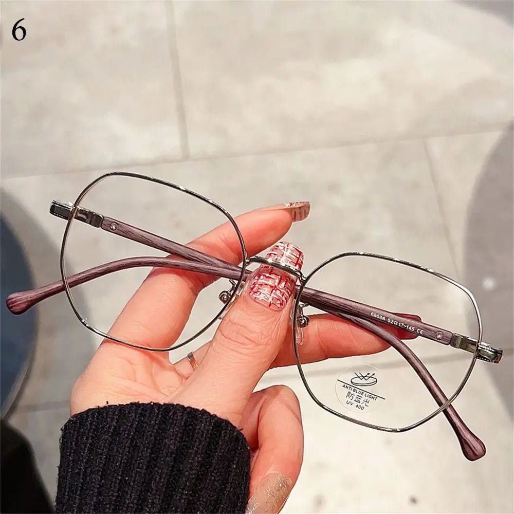 Wood Grain Metal Frame Glasses Retro Vision Care Big Frame Flat Mirror Eyewear Ultra-light Eyeglasses Women Men