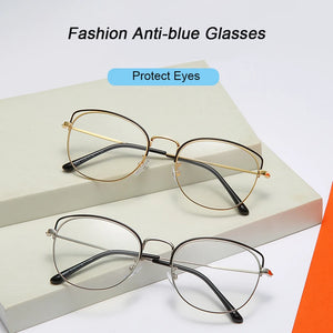 Cat Eyes Blue Ray Blocking Metal Glasses Men Women Anti Blue Light Computer Goggles Myopia Prescription Vintage Glass Frames