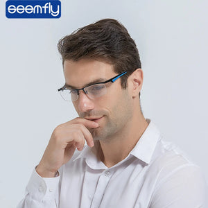 Men Reading Glasses Anti Blue Ray Women Business Spring Hinge Half Frame Stainless Steel Spectacle 1 2.5 3 4