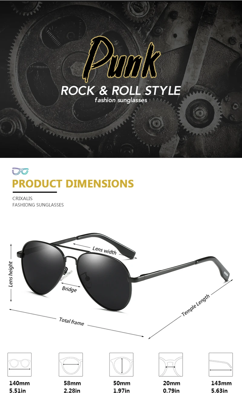 CRIXALI Pilot Polarized Sunglasses Women Men Metal Frame Vintage Anti-glare Mirror Sun Glasses Male Female UV400 Spring Hinge