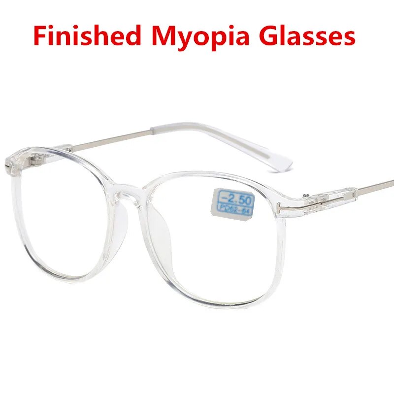 -1.0,-1.5~ -4.0Round Finished Myopia Spectacle Eyeglasses Optical Men Women Student Eyewear Prescription AC Lens Glasses Frame