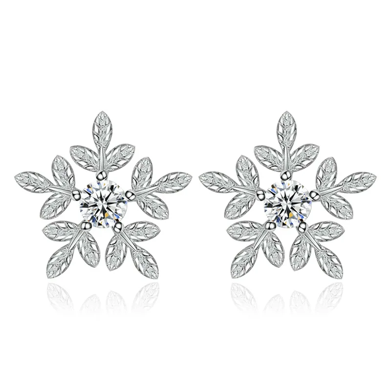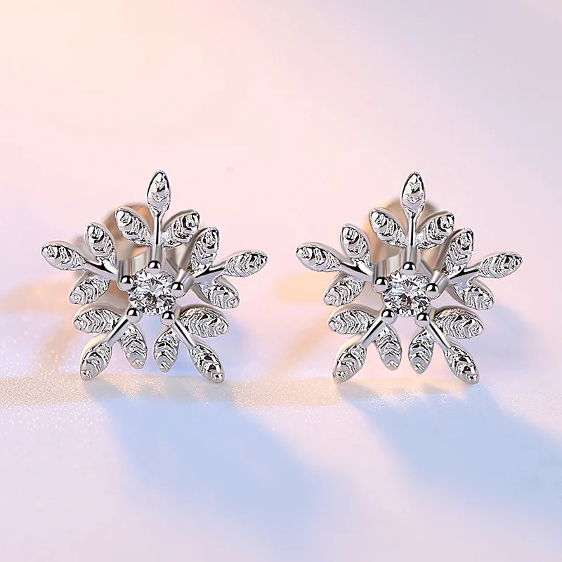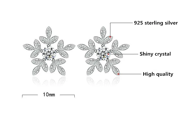 100% 925 sterling silver fashion shiny crystal snowflake ladies`stud earrings women jewelry female Valentine's D gift