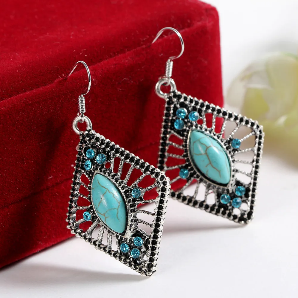 2017 hot selling Charming hollow out tibetan silver earring blue stone crystal jewelry vintage earrings for women hot
