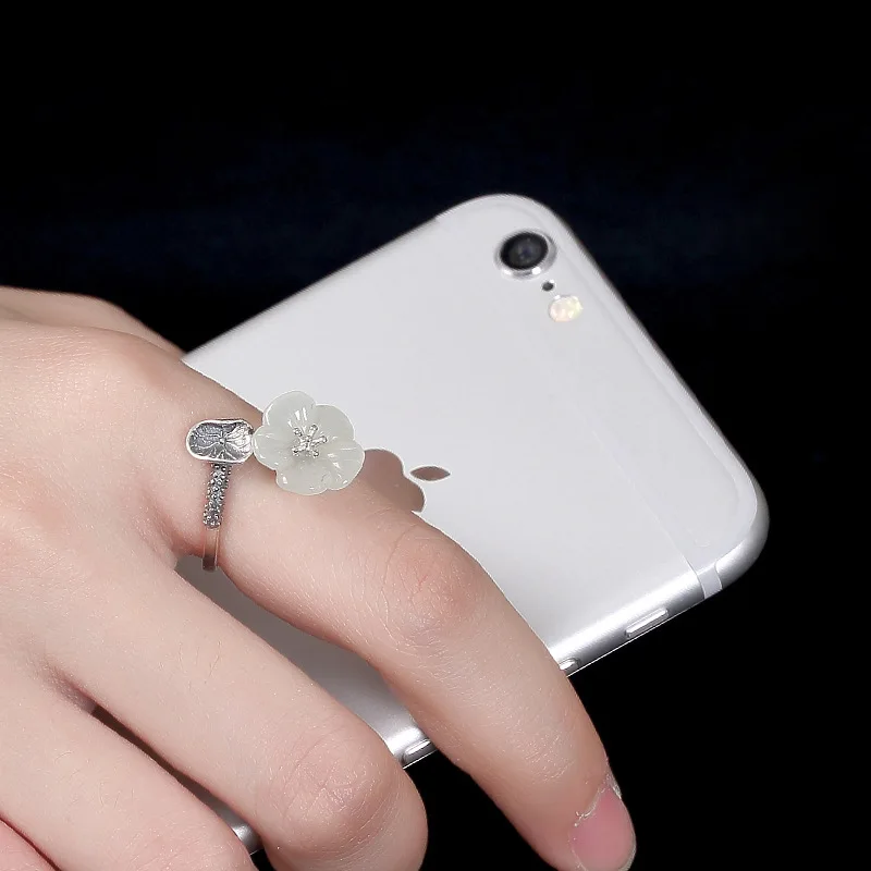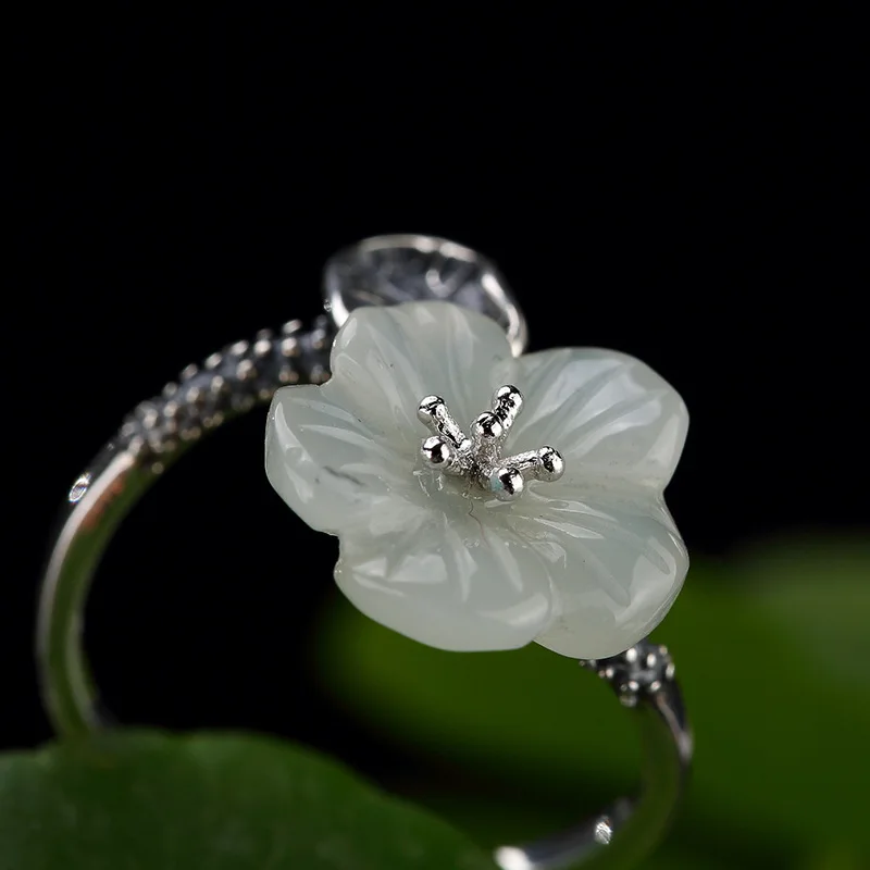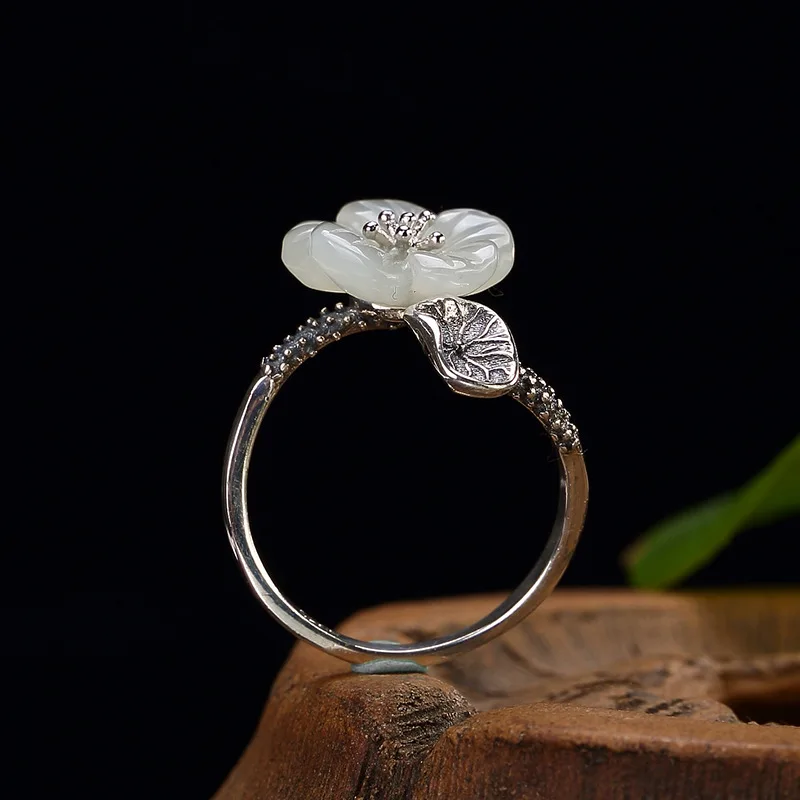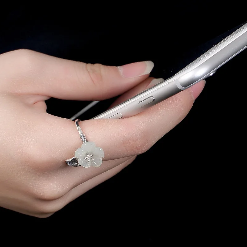 2018 Real Sale Women Anel Feminino Restoring Ancient Ways Is Hetian Plum Flower Inlaid Ring Wholesale High-grade Joker Openings