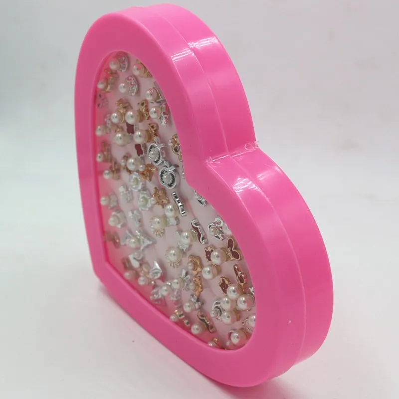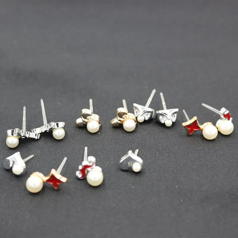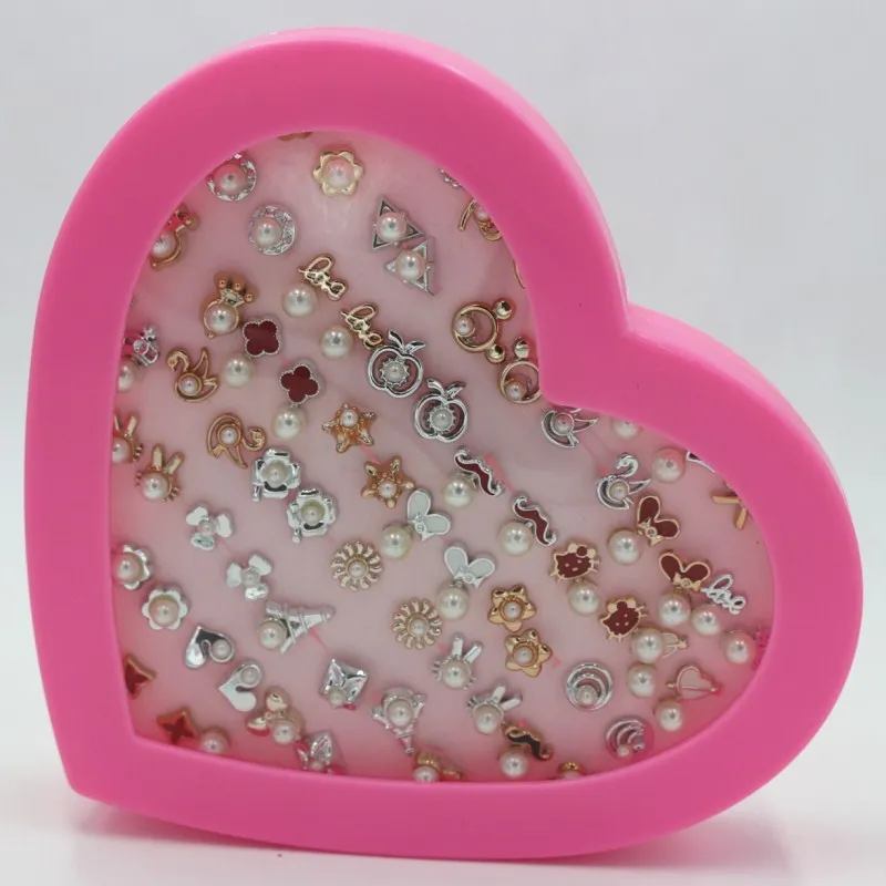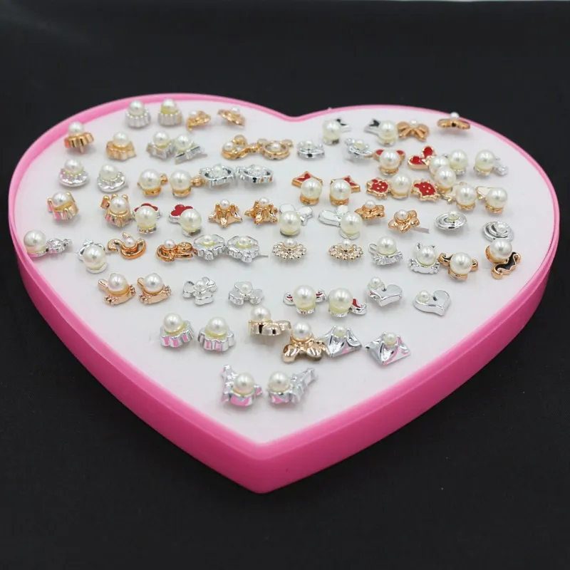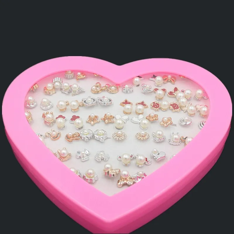36 PAIRS/SET Simple Flower Bowknot Simulated Pearls Stud Earrings For Girls Fashion Ear Jewelry Heart Shape Box Packed Brincos