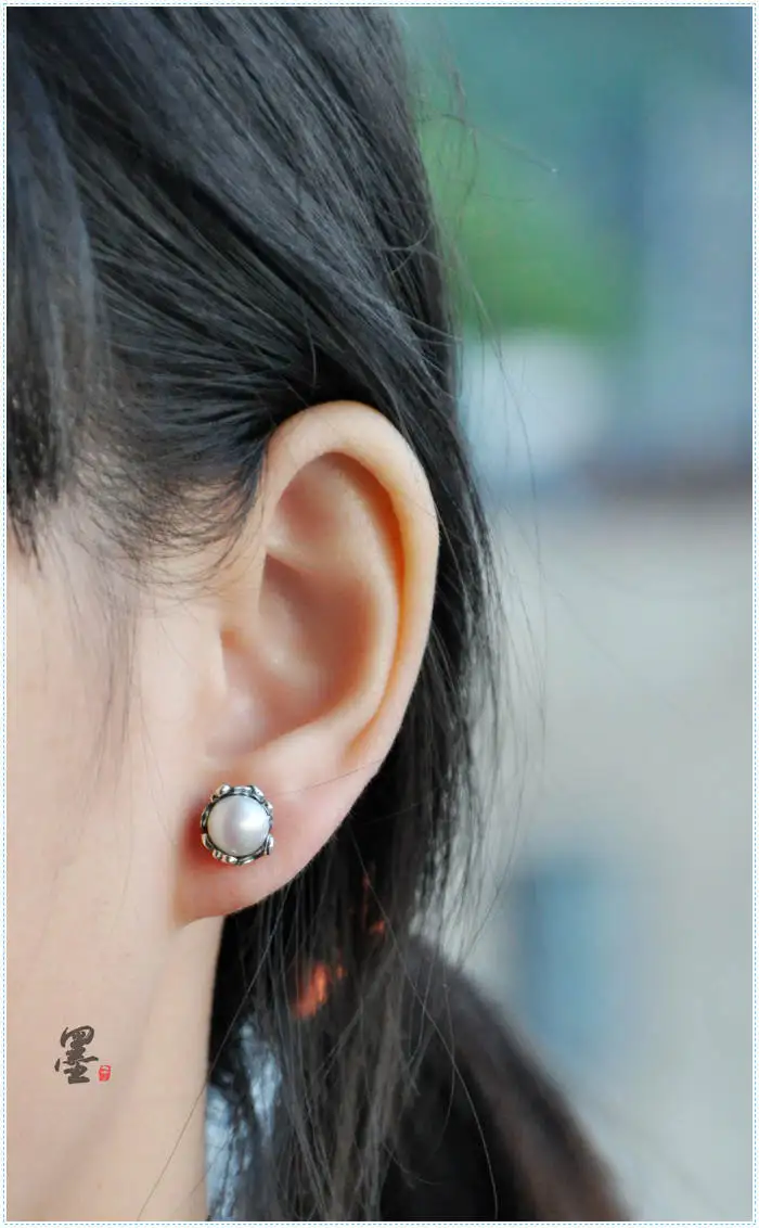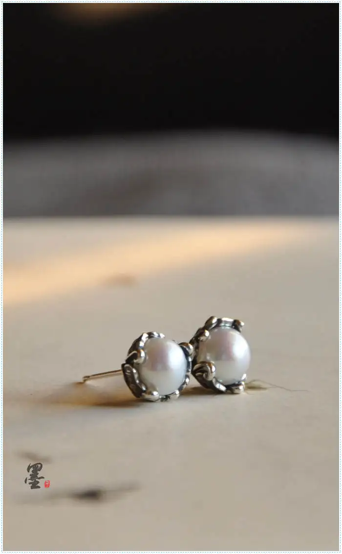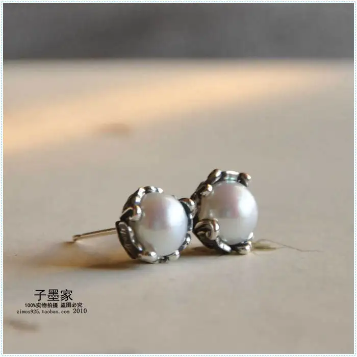 925 pure wind comfort system intime manual Retro Old silversmith lotus supporting Pearl Earrings