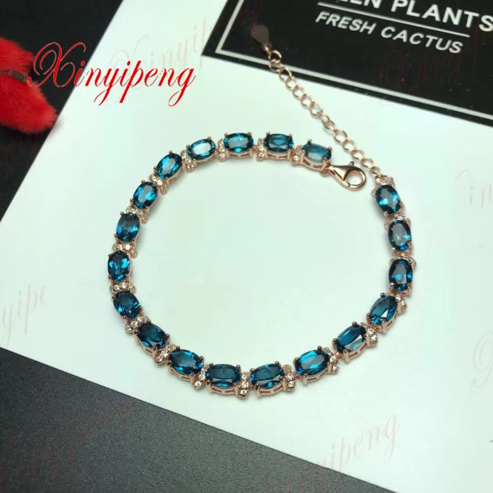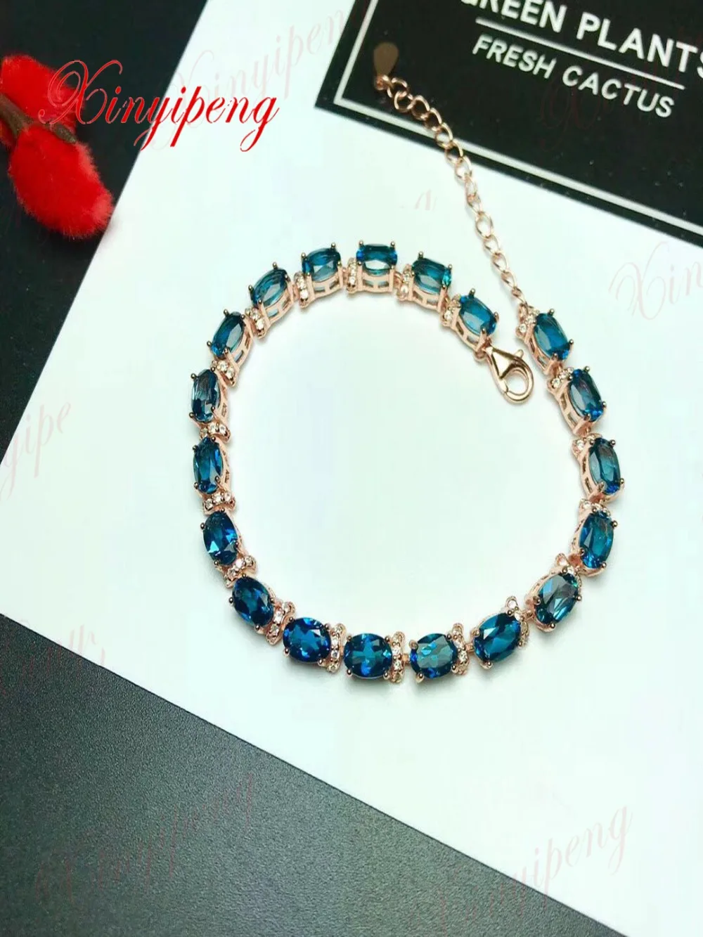 925 silver inlaid natural blue topaz stone bracelet design is beautiful