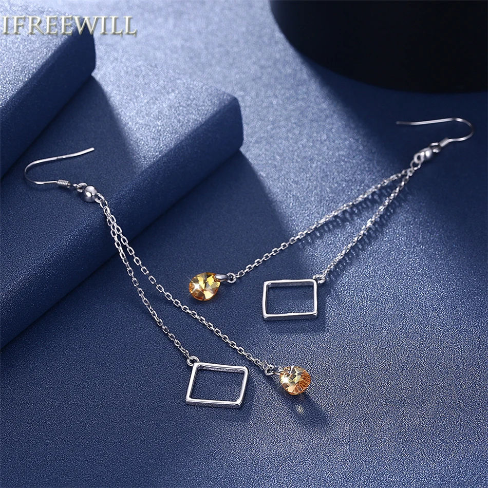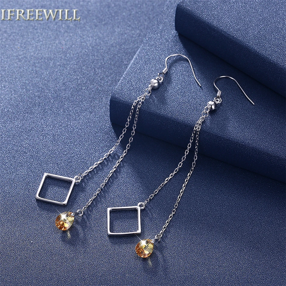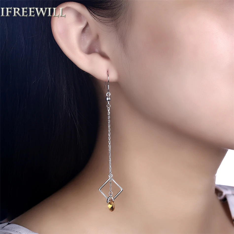 925 silver Square drop earrings for woman long classic tassel orange Natural Crystal fine jewelry