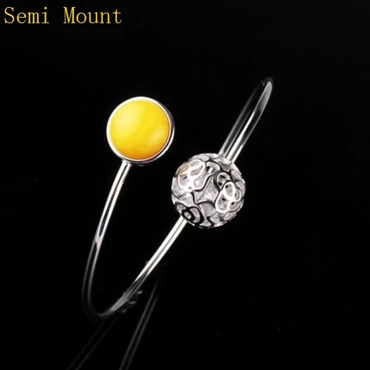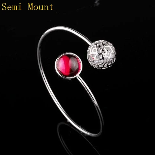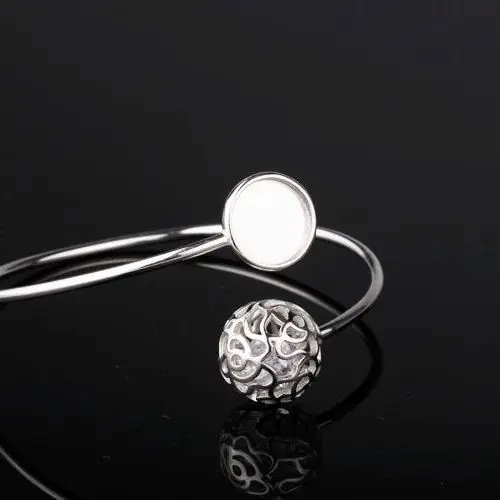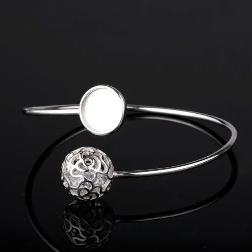 925 Sterling Silver Bracelet Bangle 12x12mm Round Cabochon Semi Mount Unique Fine Jewelry Setting
