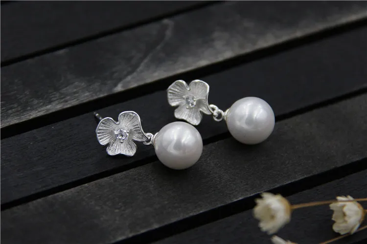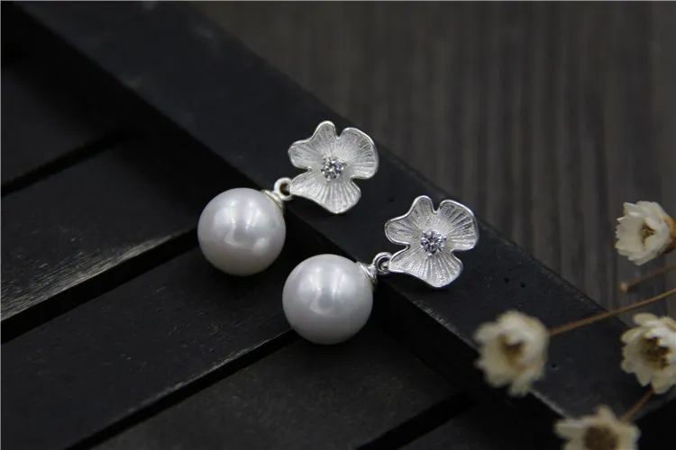 925 Sterling Silver Elegant Flower & Pearl Stud Earring For Women Hand Made Thai Jewelry For Women Best Love Gift For Mom