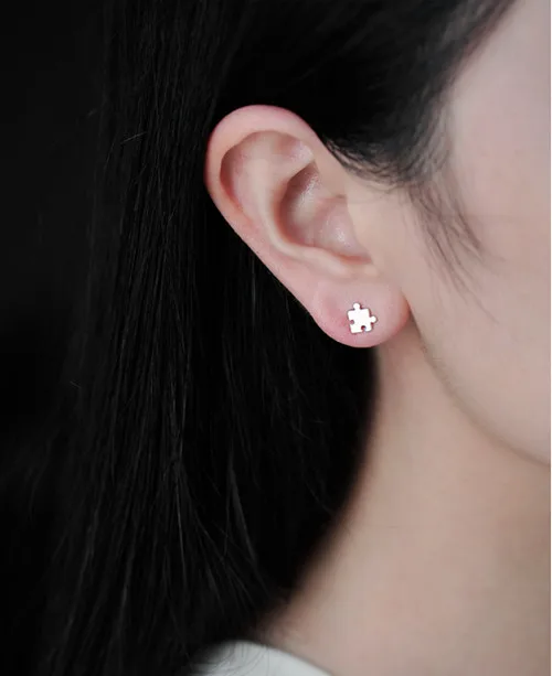 925 Sterling Silver Splicing Block Shape Stud Earrings For Women Casual Style Girl Earings Personality Sterling-silver-jewelry