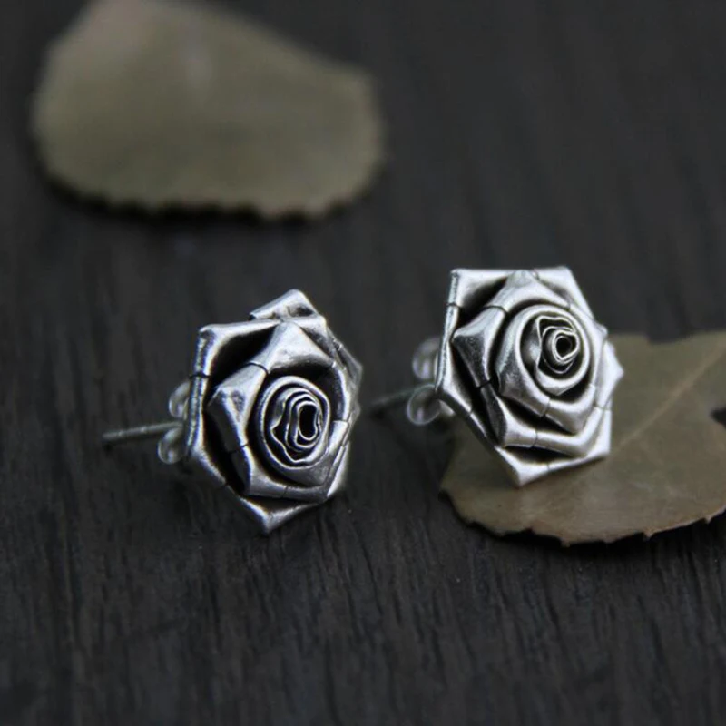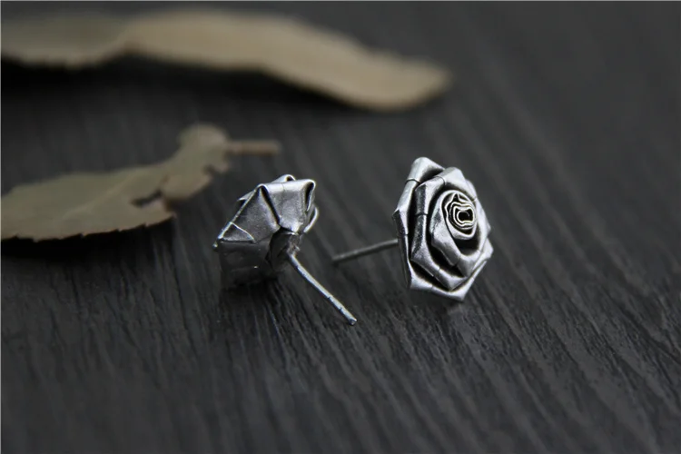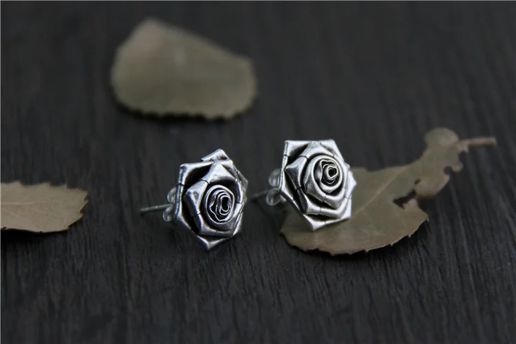 925 Sterling Silver Vintage Hand Made Rose Stud Earring For Men & Women Ethnic Earring Thai Jewelry arete de plata para mujer
