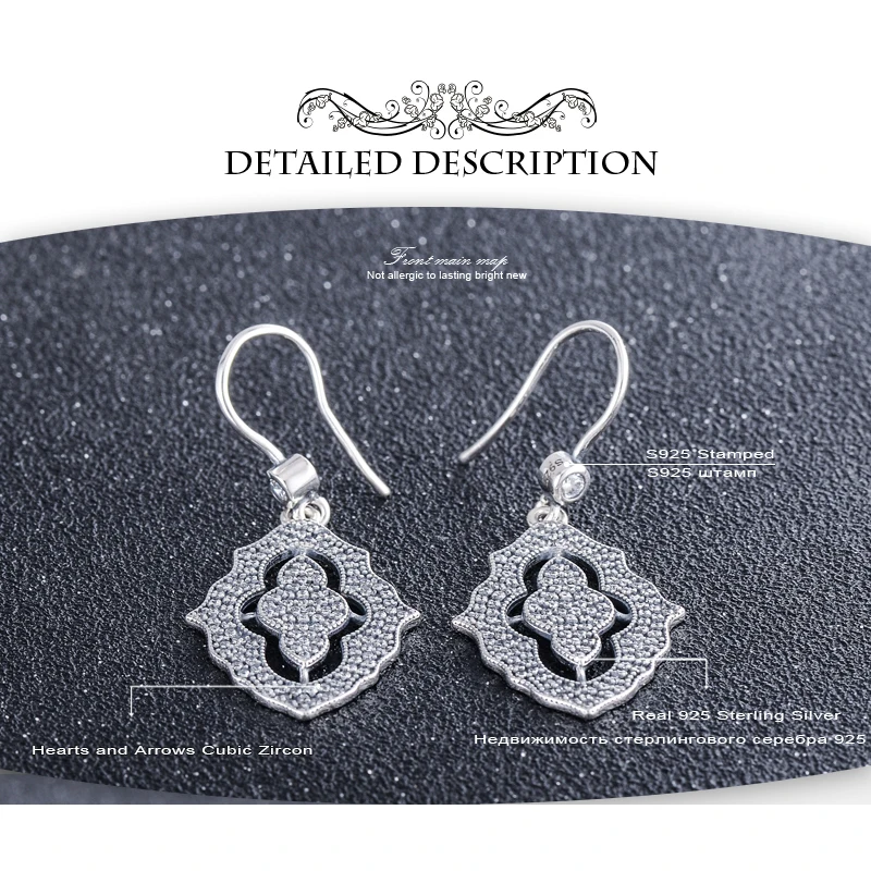 New Arrival 925 Sterling Silver Sparkling Lace With Clear Cubic Zirconia Women Earrings Luxury Jewelry PSER0032-B