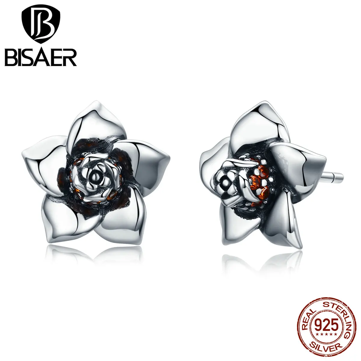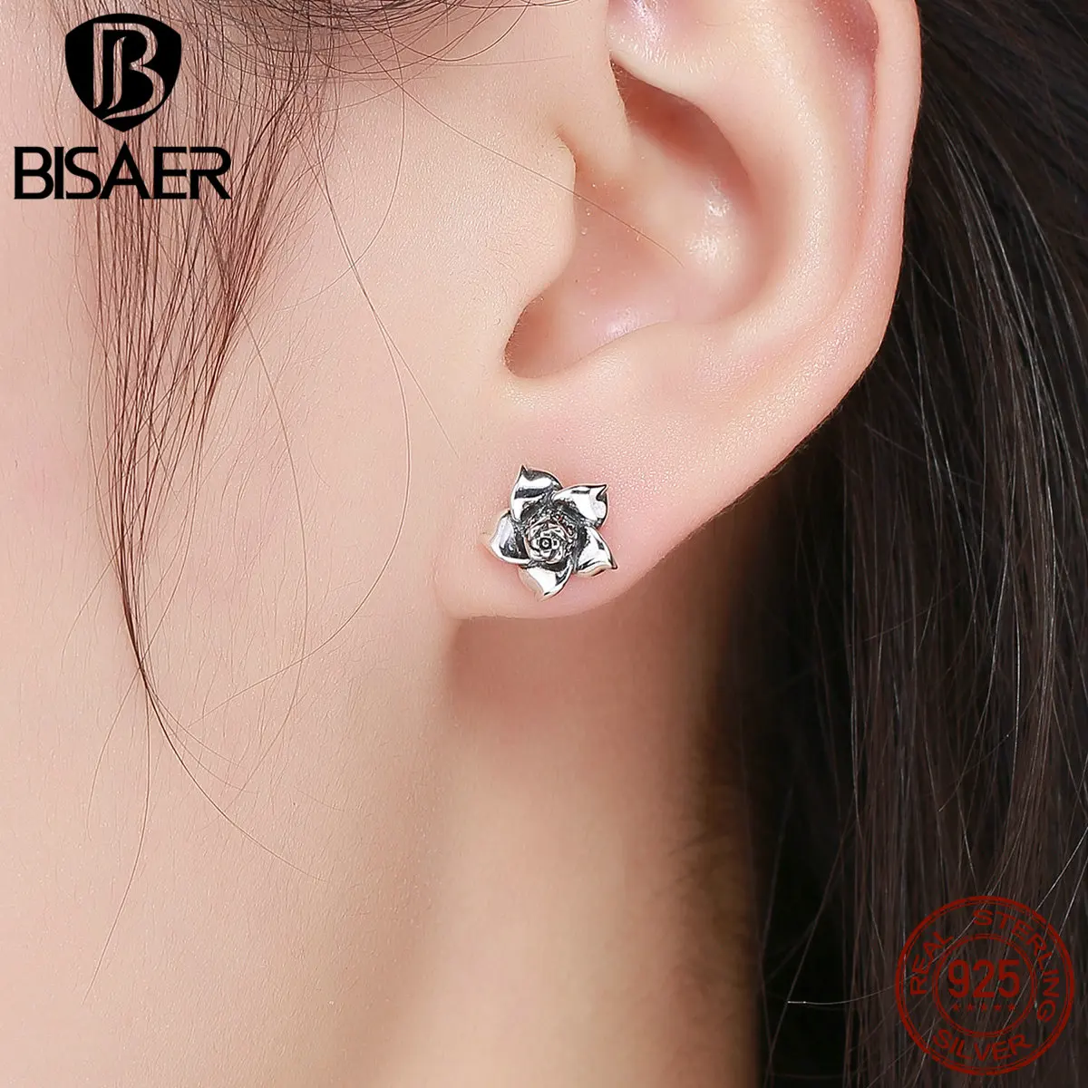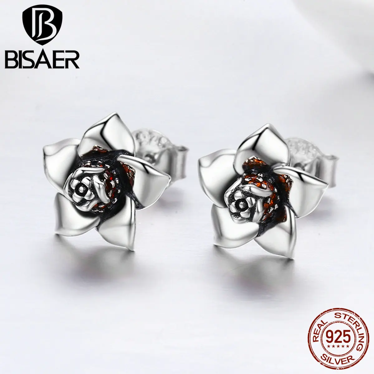 Authentic 100% 925 Sterling Silver Gardenia Blossom Beautiful Flower Stud Earrings For Women Fashion Jewelry Birthd Gift