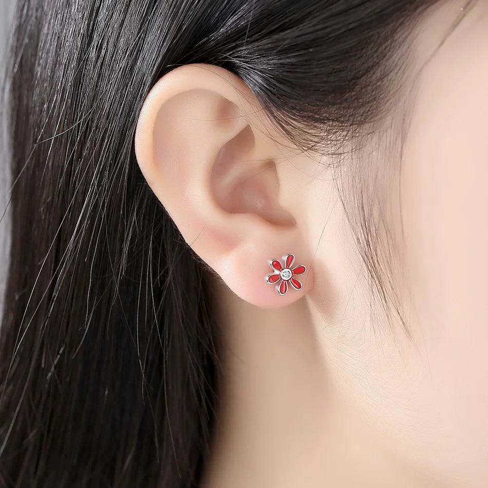 Enamel flower stud earrings
