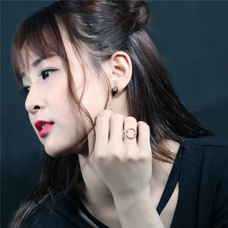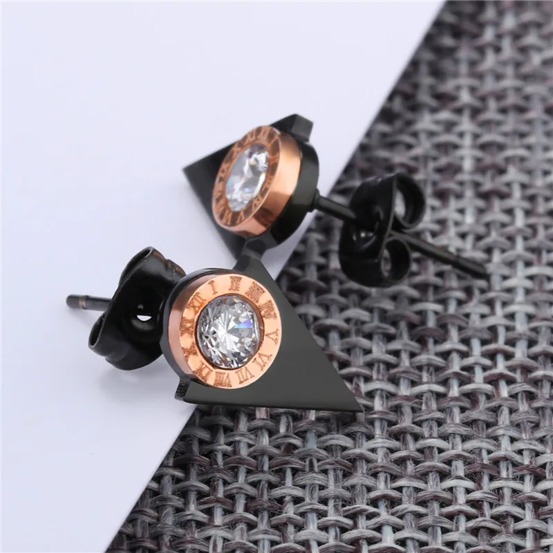 Black Triangle Stud Earrings for Women Metal Geometric Roman Letters AAA Cubic Zirconia Wedding Earrings for Brides Crystal 2017