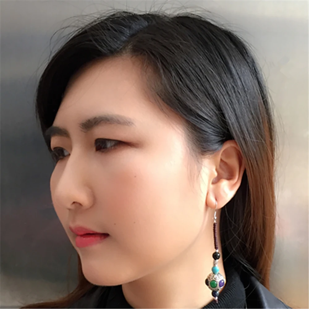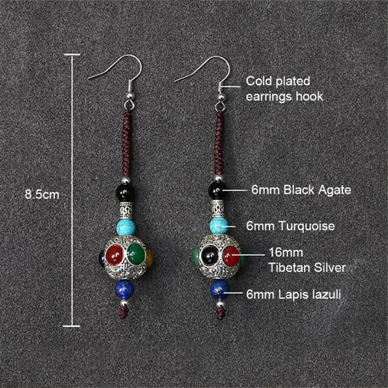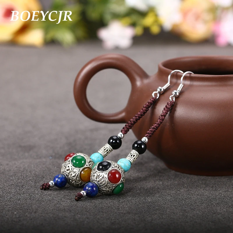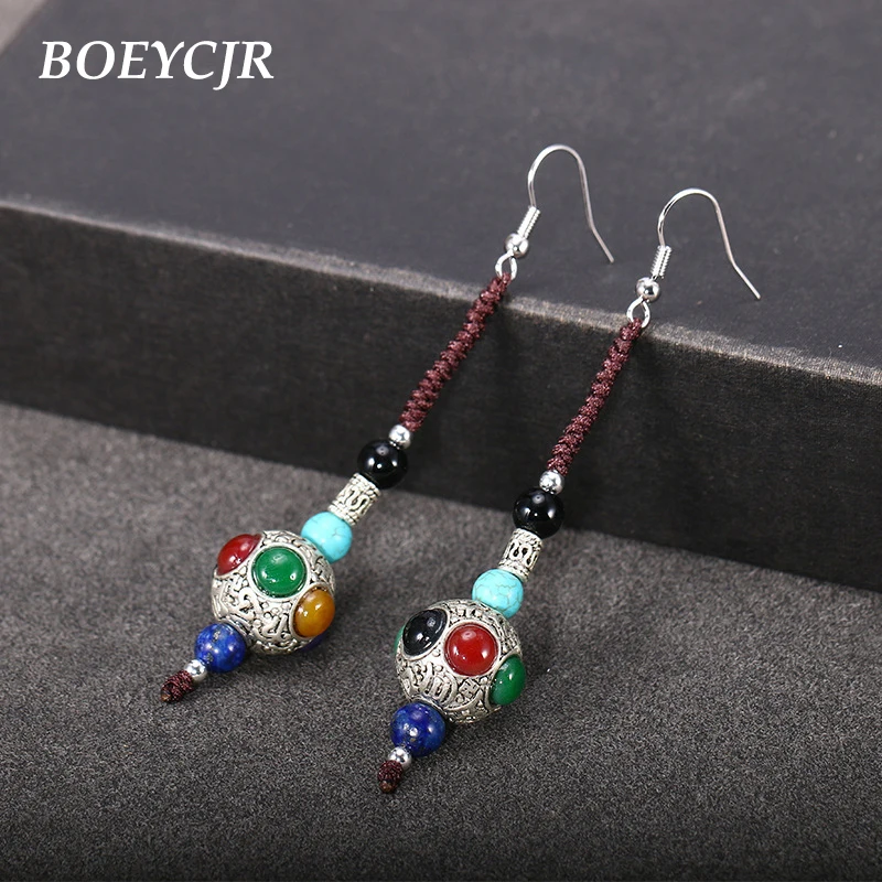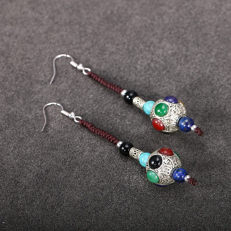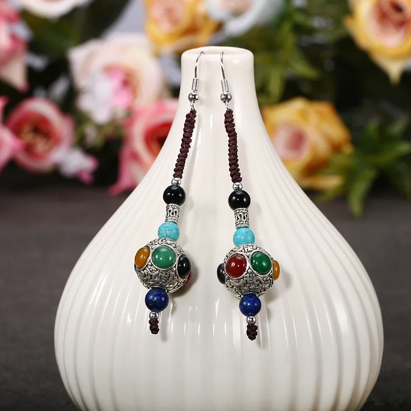 Nepalese Ethnic Stone Beads Drop Earrings Handmade Ethnic Design Fashion Jewelry Vintage Rope Dangle Earrings for Women