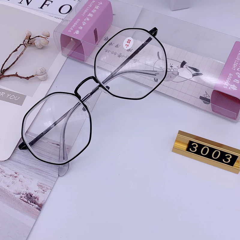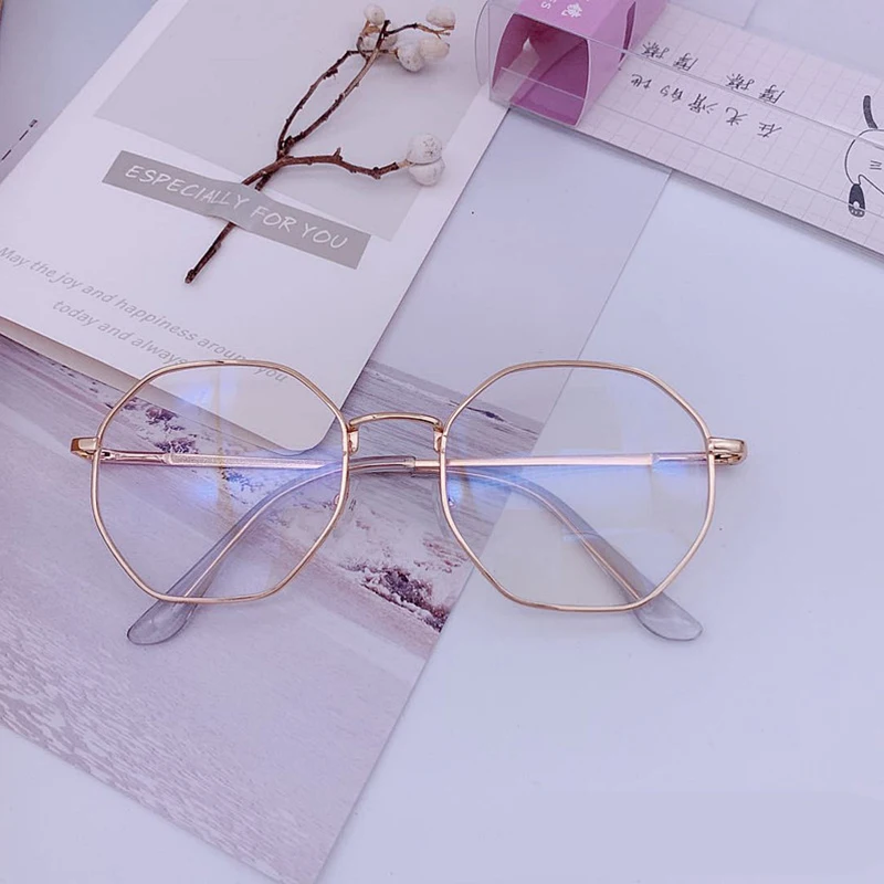 Charm Retro Metal Frame Clear Lens Glasses Octagon Polygon Oversized Eyeglasses Women Nerd Geek Eyewear Eyeglasses