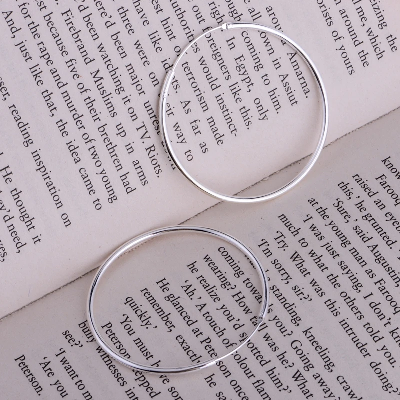 circular smooth shining silver plated earrings 925 jewelry for women silver earrings RAYPIHMP