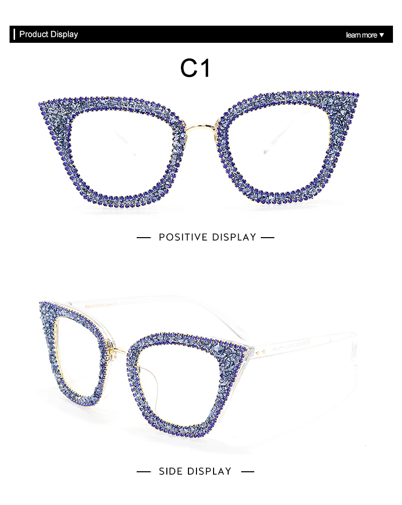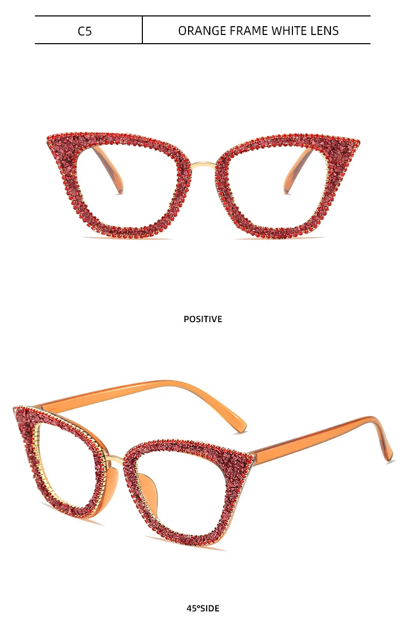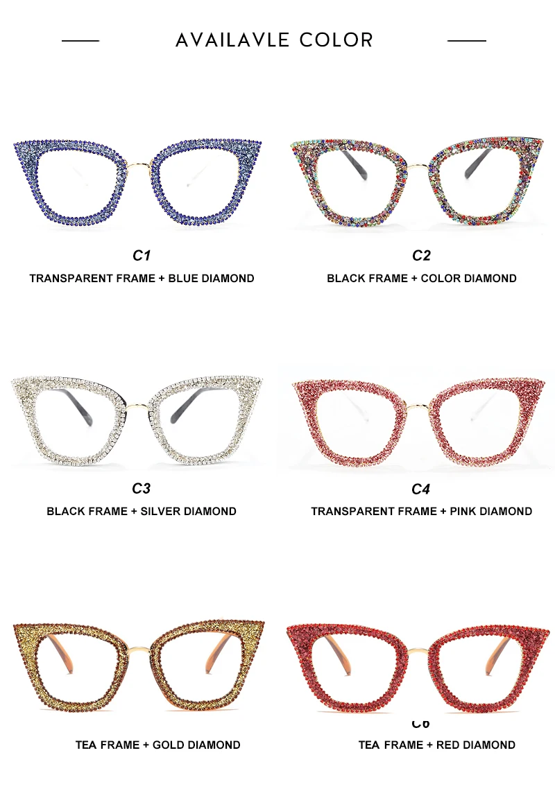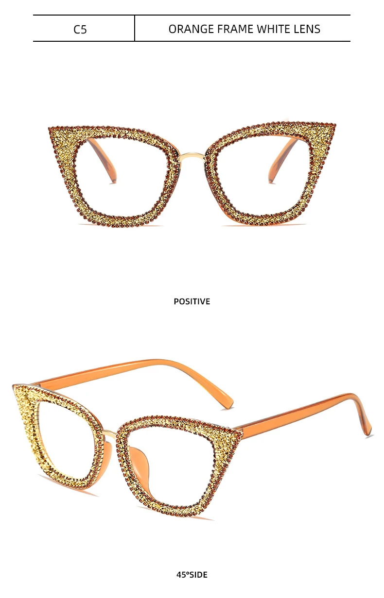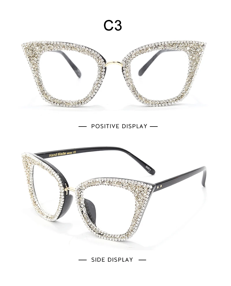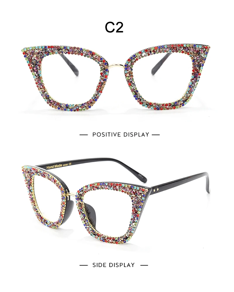 Diamond Cat Eye Glasses Frame Silver Gold Glitter Handmade Vintage Eye Glasses Retro Female Brand Designer Eyeglasses Myopia