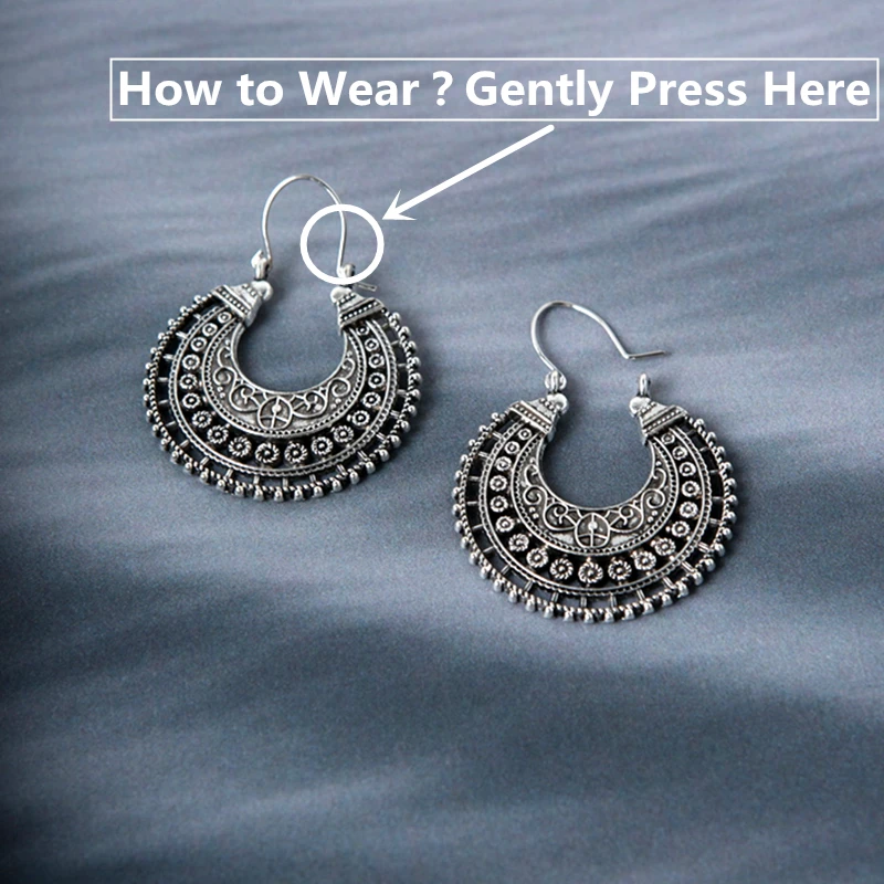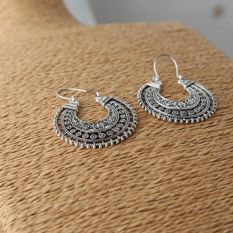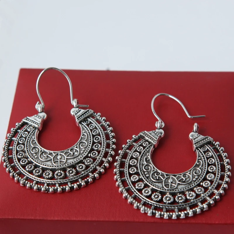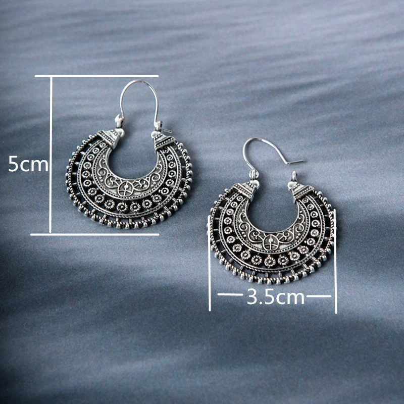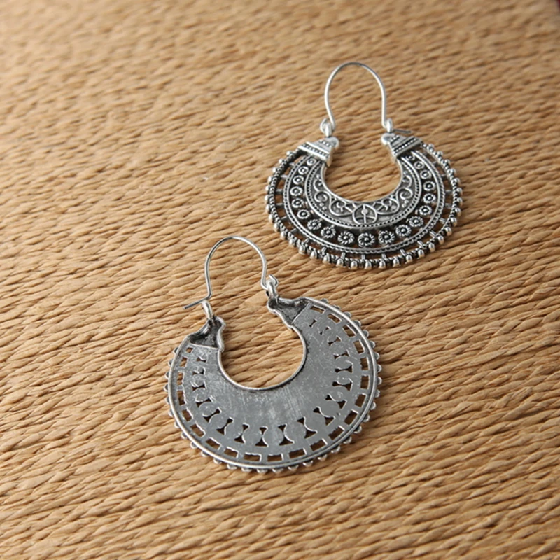E045 Vintage Hollow Hoop Earrings Bohemian Style Round Circle Earrings Women Gift Folk-custom Earrings Fashion Jewelry Wholesale