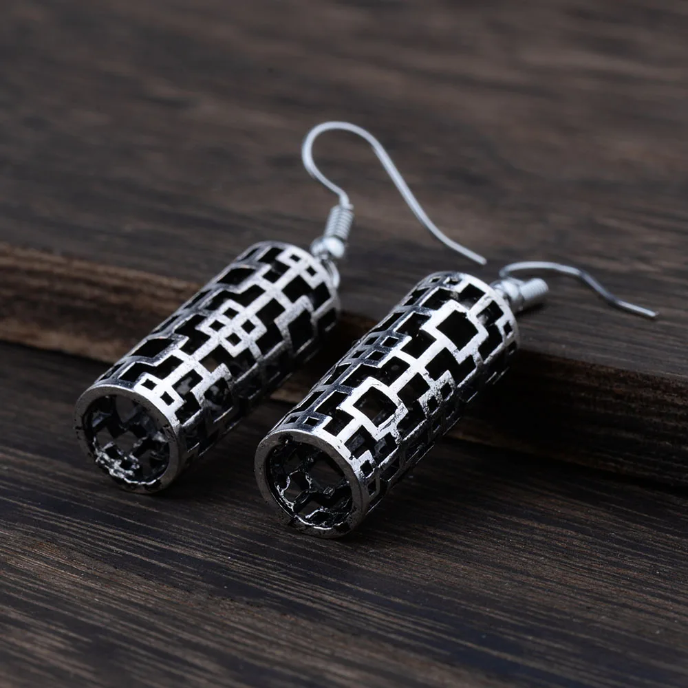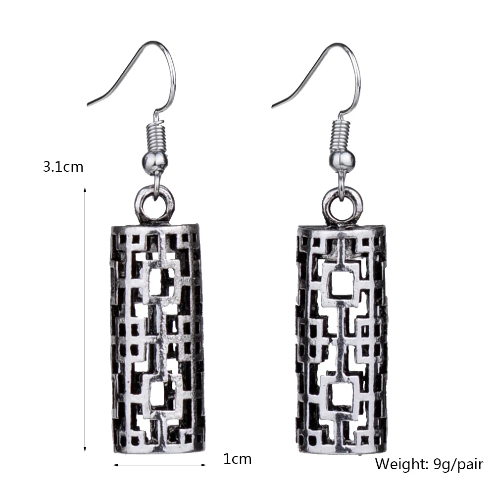 EQ106 Tibetan Silver Color Hollow 3D Pillar Geometric Drop Dangle Vintage Earrings For Women Girls New Jewelry