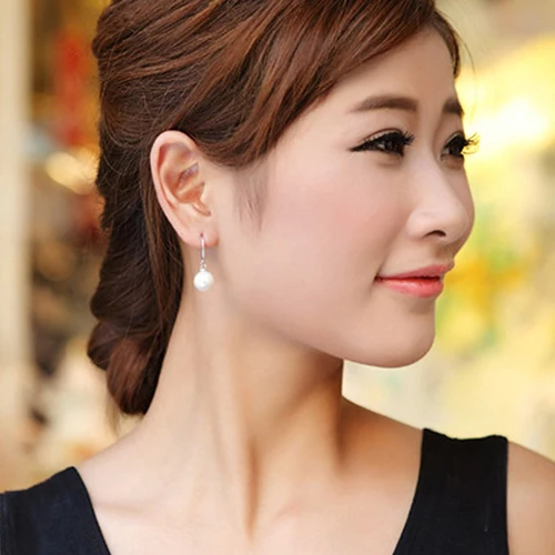 Fashion Ladies Silver Plated Faux Pearls Hook Dangle Earrings Dangle Eardrops