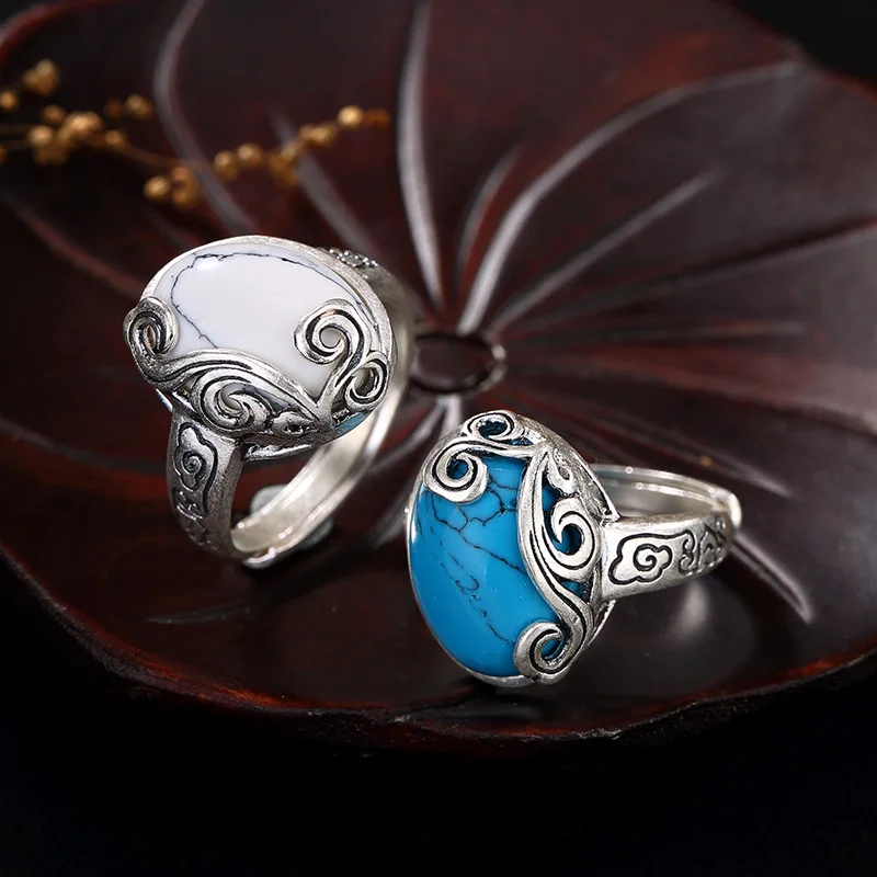 fine silver xiangyun blue white hoard of restoring ancient ways ring Ms. Han edition wholesale sterling silver ring