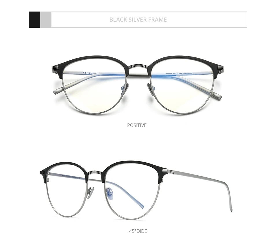 FONEX Pure Titanium Glasses Frames Men Vintage Retro Round Myopia Optical Prescription Eyeglass 2023 Women Korean Eyewear F85655