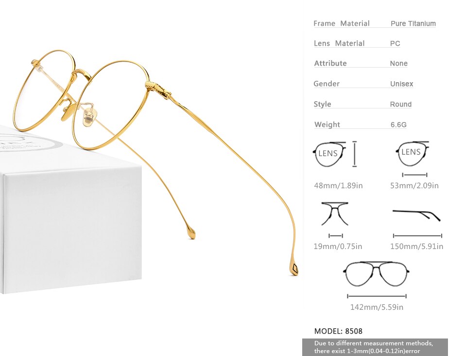 Pure Titanium Glasses Men Vintage Round Eyewear Myopia Optical Prescription Brand Designer Eyeglasses Frame Women