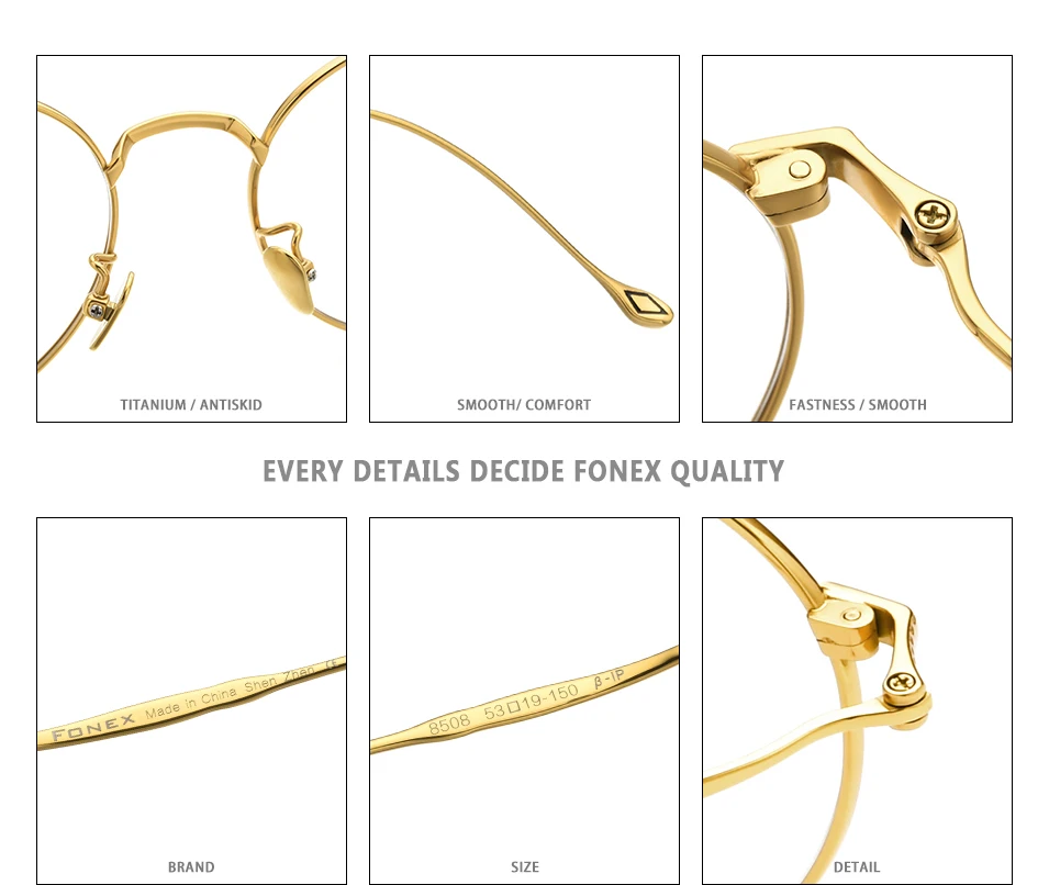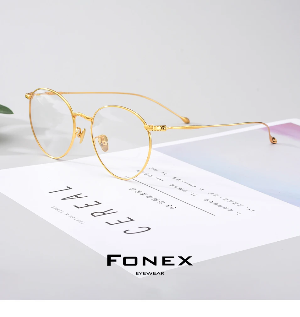 FONEX Pure Titanium Glasses Men Vintage Round Eyewear Myopia Optical Prescription Brand Designer Eyeglasses Frame Women 8508