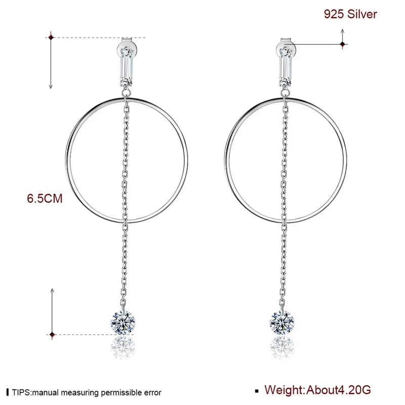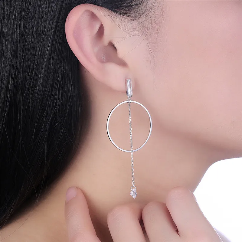 3cm Circle Dangle Earrings 100% Pure 925 Sterling Silver Earring for Women Female Ladies Wholesale Gift