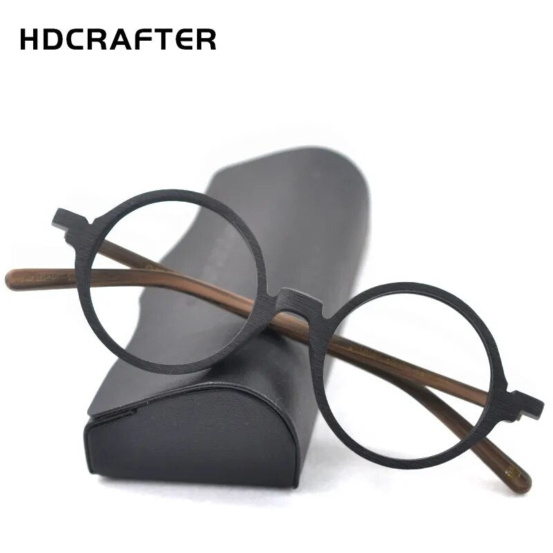 HDCRAFTER Vintage Retro Round Glasses Frames Men Wood Prescription Myopia Hyperopia Optical Eyeglasses Glasses Frame for Women