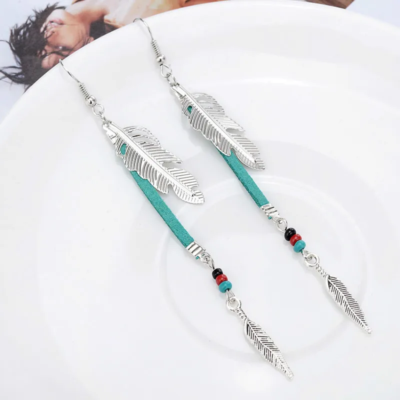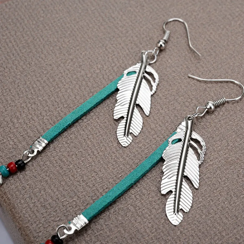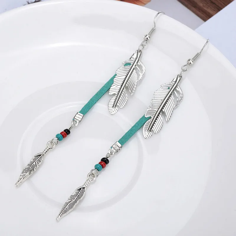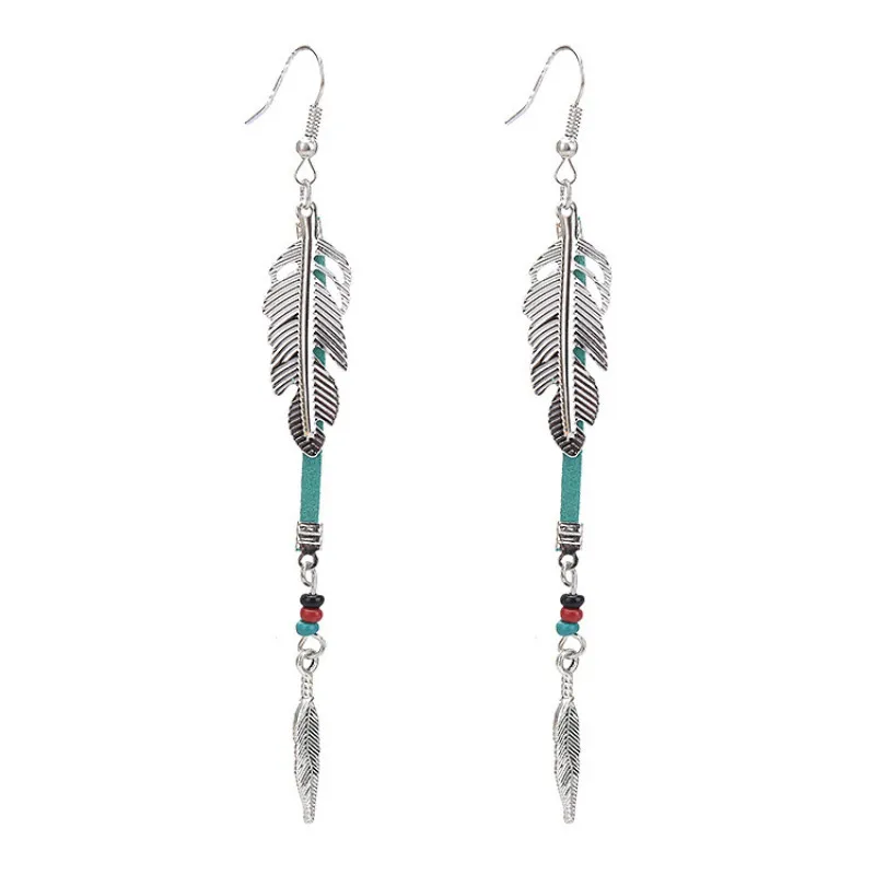 Fashion Bohemian Earrings Accessories Retro Personality Metal Leaf Feather Earrings For Women Long Dangle Earrings QC7621