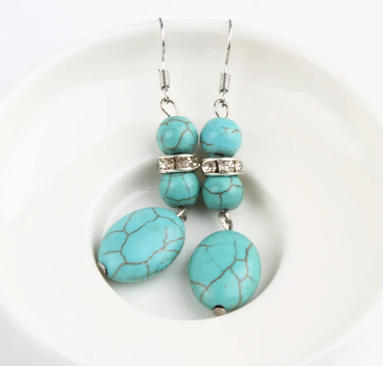 1pair Tibetan Silver Rhinestone Oval Drop Pendant Long Earrings Women Jewelry Drop Shipping EAR-0295