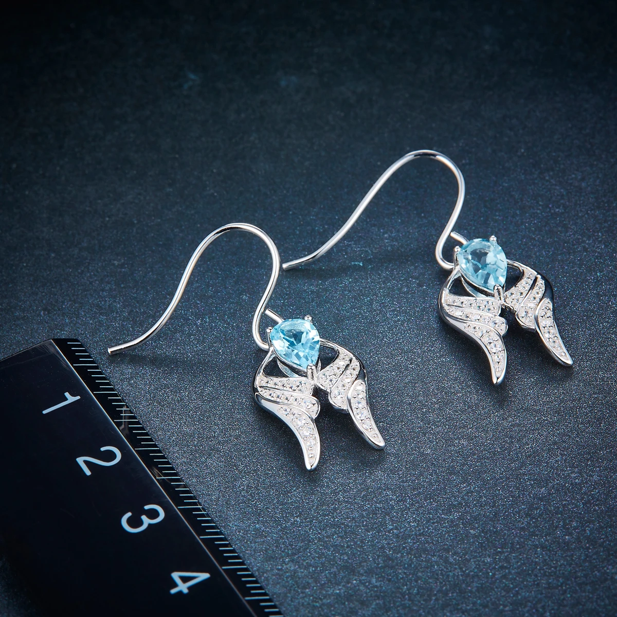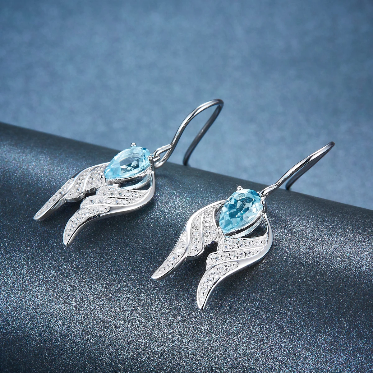 Hutang Beautiful Wing Earrings Natural Blue Topaz Solid 925 Sterling Silver Dangle Earring for Women's Ladies w Gift Box 2017